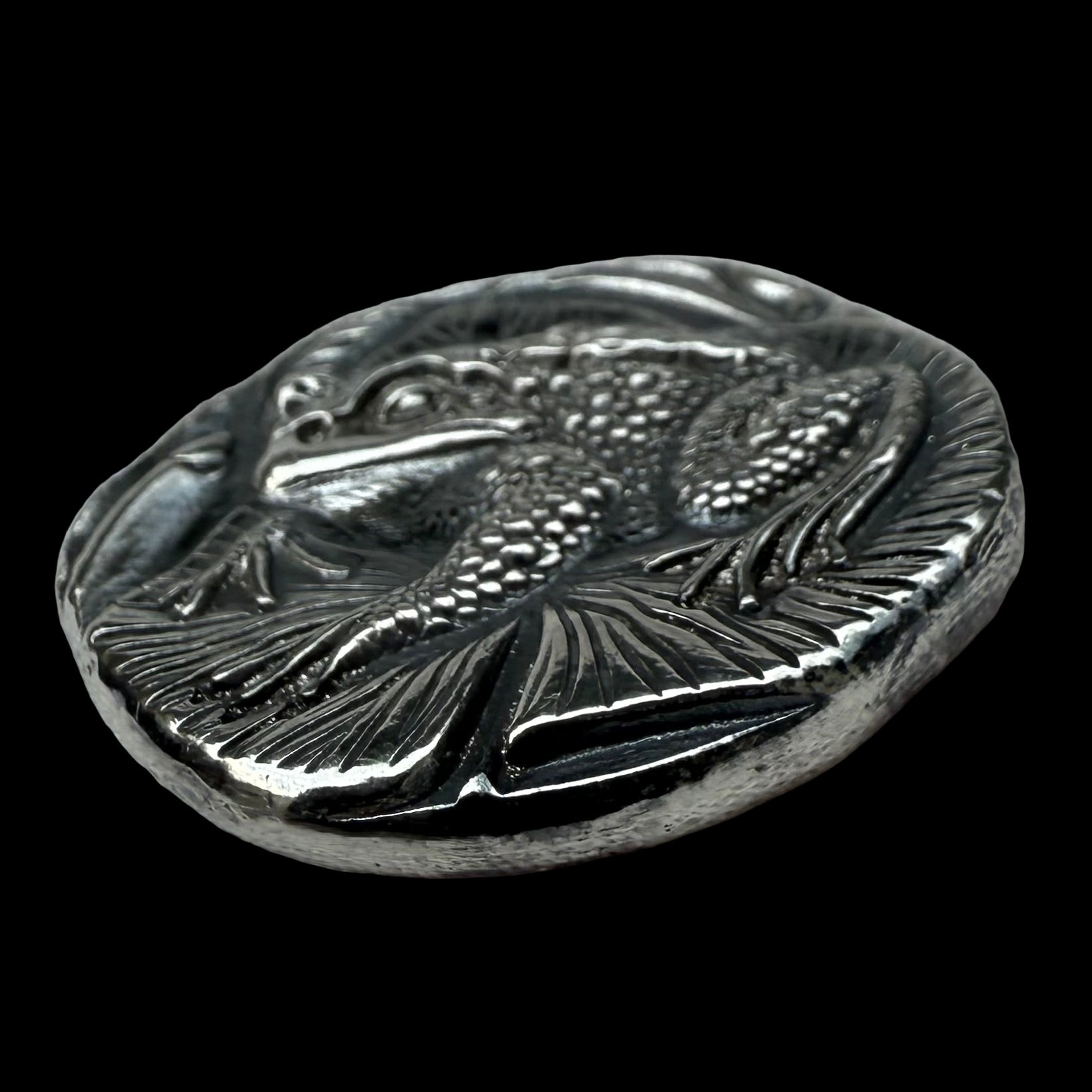 This cute Frog silver nugget is hand crafted in Northern England by St Bee's Silver using .5 ounces of .999 pure silver bullion. This beautiful limited edition sliver art is inspired by animals and makes a fantastic addition to any portfolio.