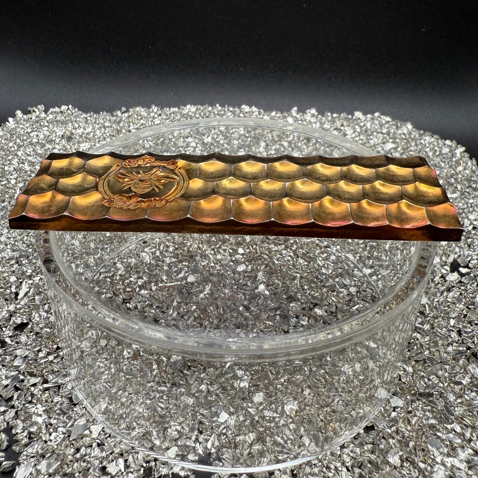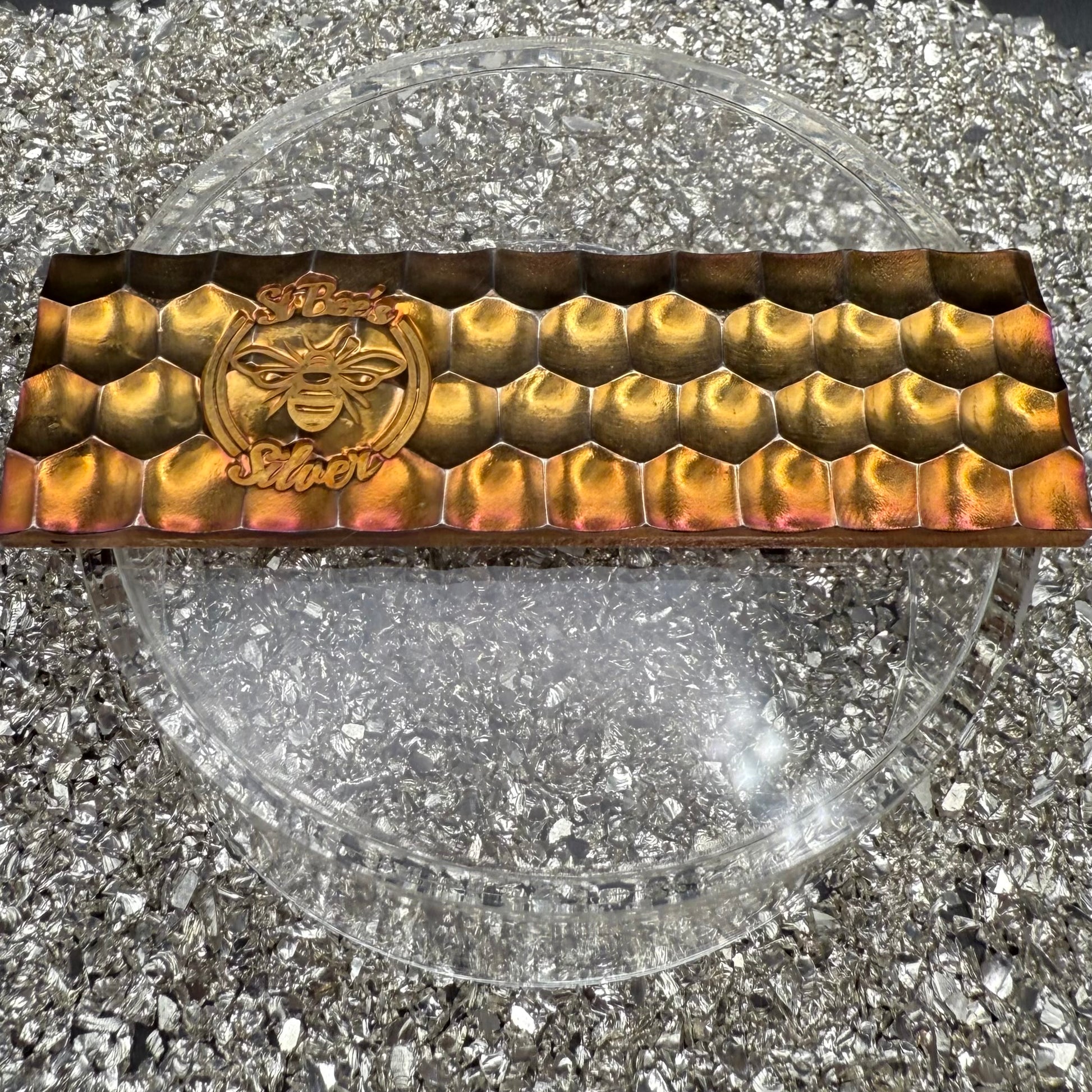 'Gold Toned Honey Bar' 3.95 oz .999 Fine Silver Bar, Hand Crafted by St Bee's in England, Gold Toned Finish, Includes Wood Treasure Chest, COA, Mint Condition, Limited Edition