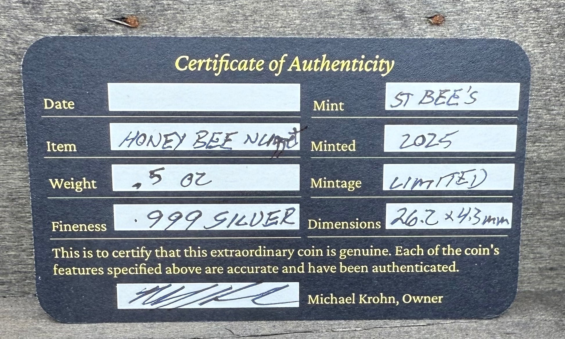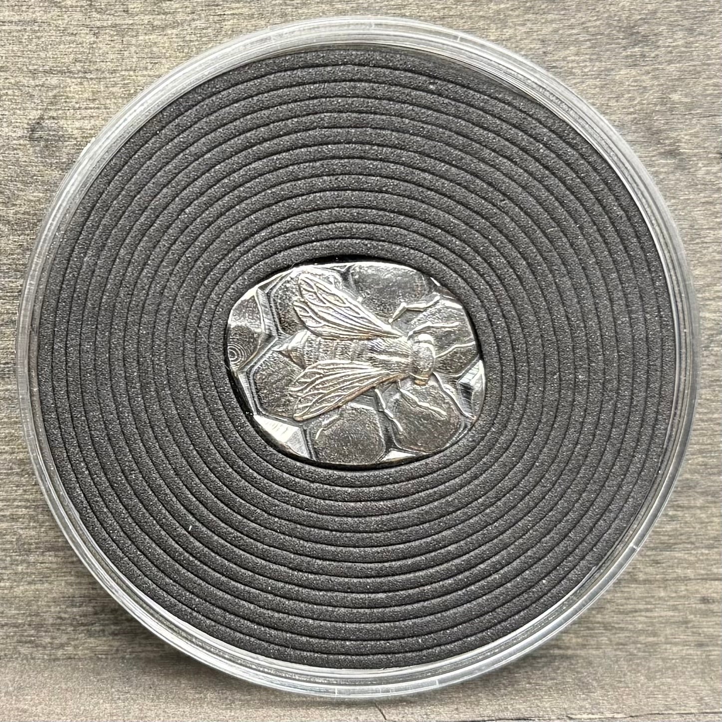 'Honey Bee' .5 oz .999 Pure Silver Nugget Hand Crafted by St Bee's in England, Shiny Finish, Includes Wooden Box & COA, Mint Condition Limited Edition