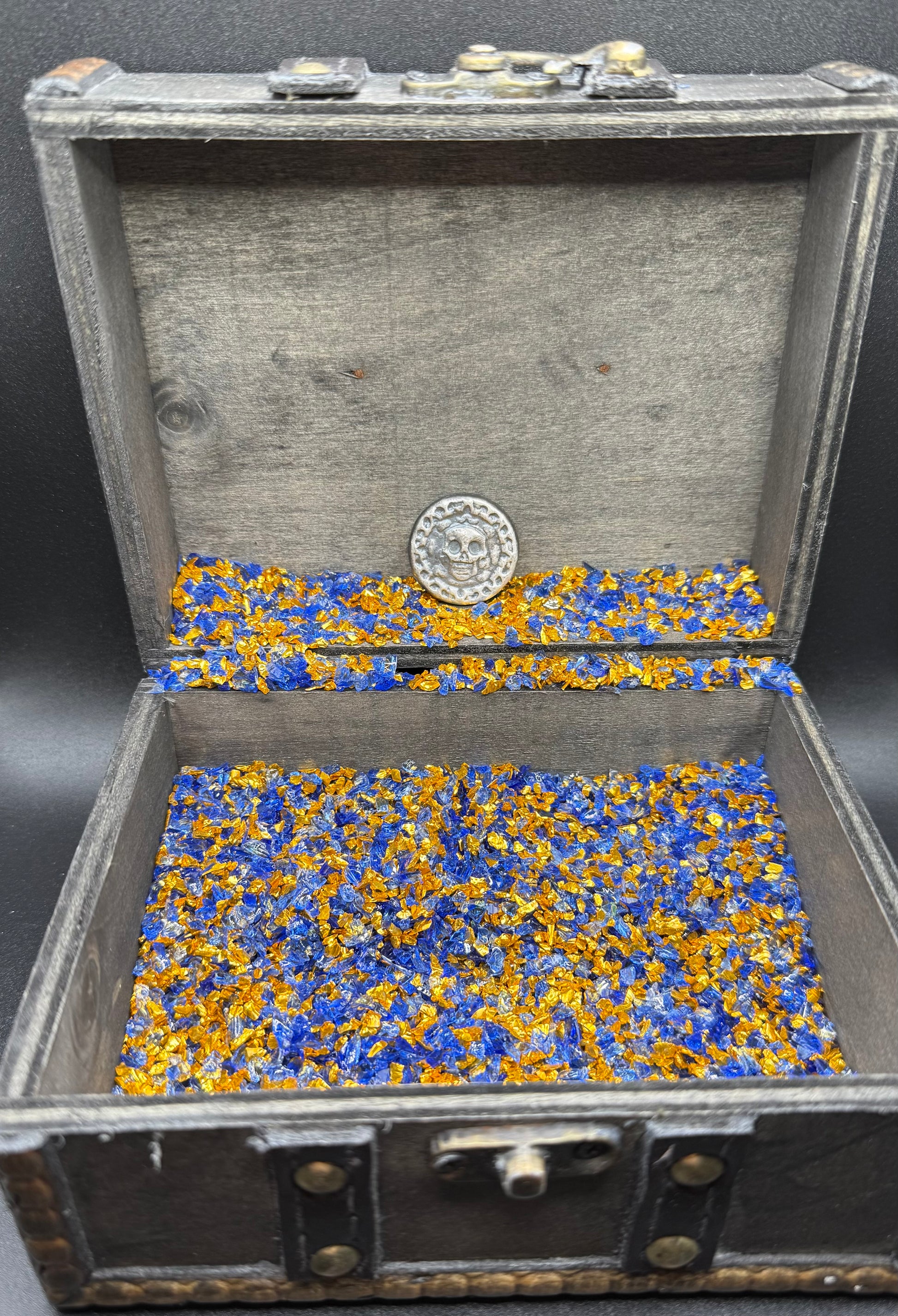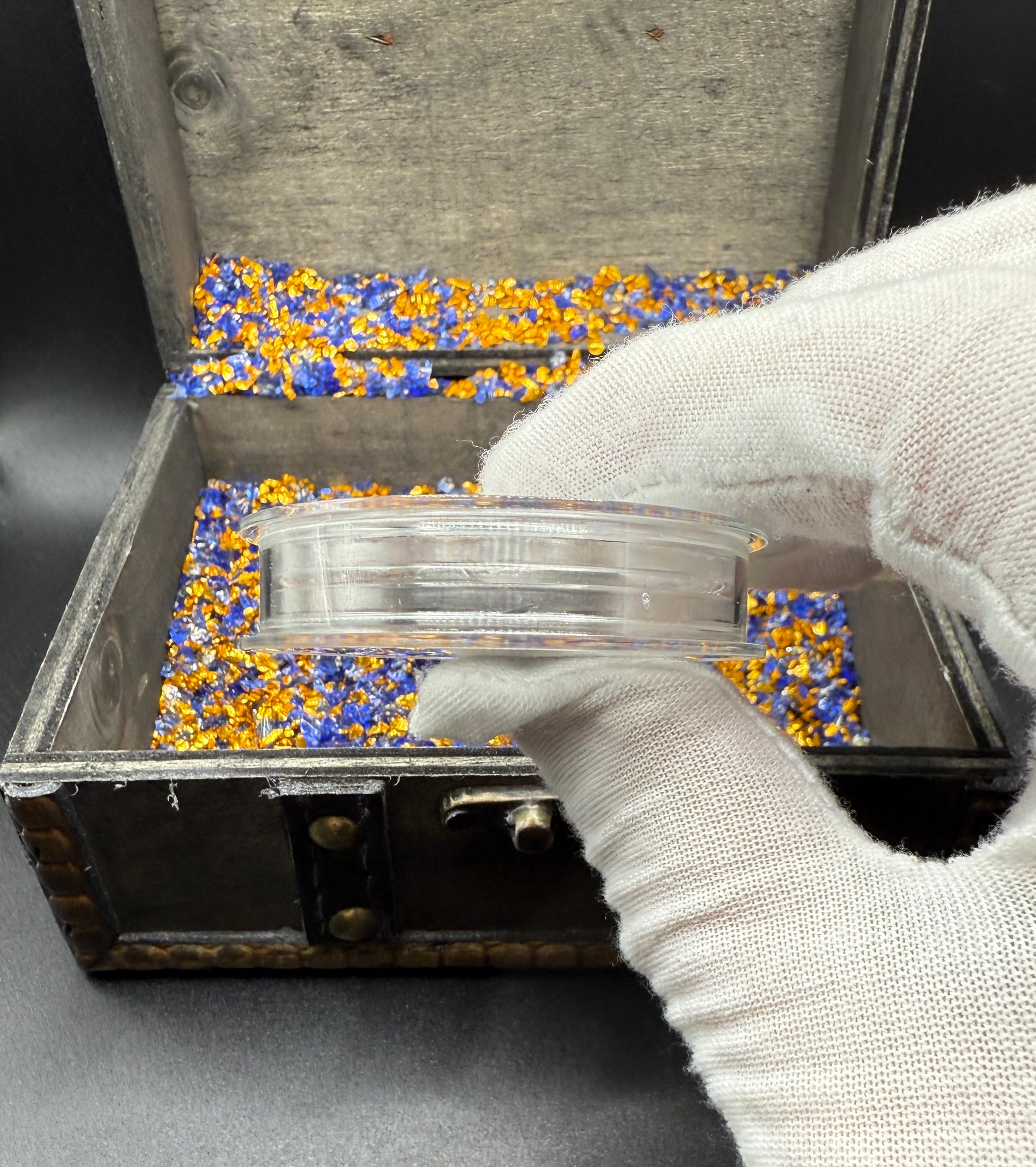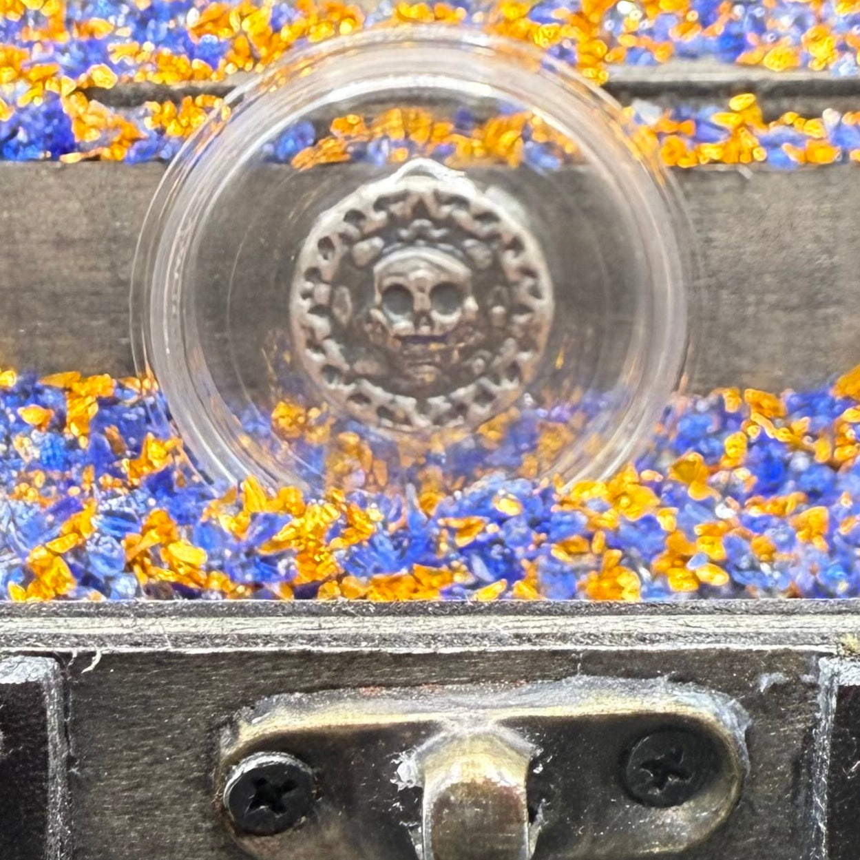 This precious piece comes sealed in a protective capsule (Acid Free / No PVC) protecting it from dust, dirt, and scratches. A custom wooden pirate treasure chest is included to secure your valuable pirate treasure. Certificate of authenticity is included.