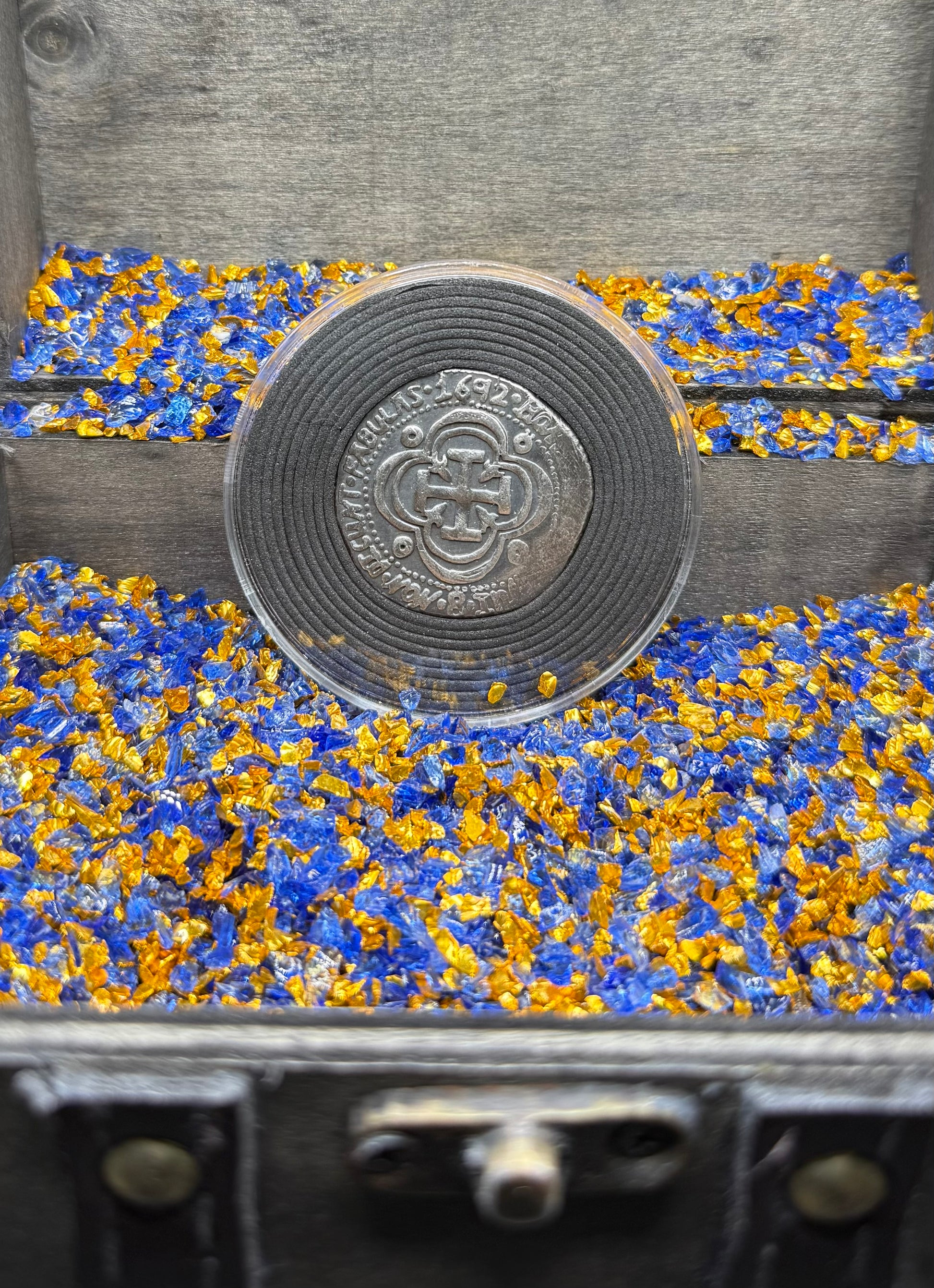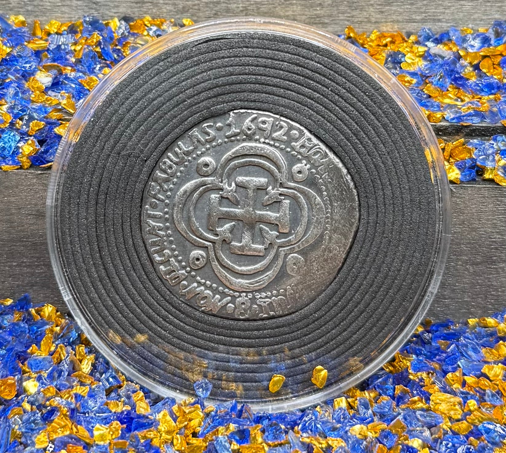 This beautiful pirate treasure '1692 Piece of Eight' is inspired by the original Spanish silver dollar worth eight Reales, a unit of currency in Spain combined with a Pirate theme.
