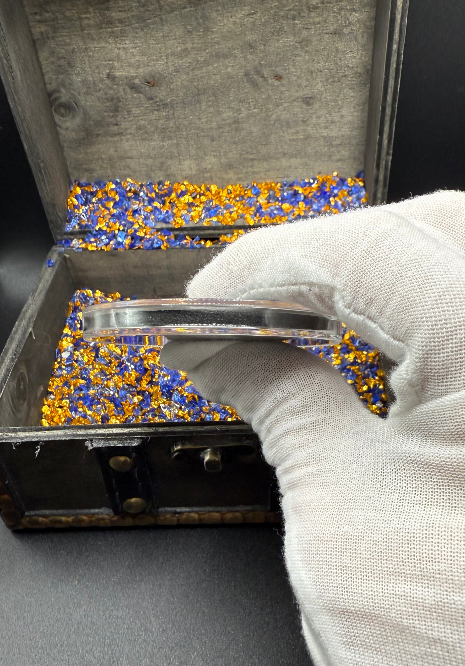 This precious piece comes sealed in a protective capsule (Acid Free / No PVC) protecting it from dust, dirt, and scratches. A custom wooden pirate treasure chest is included to secure your valuable pirate treasure. Certificate of authenticity is included.