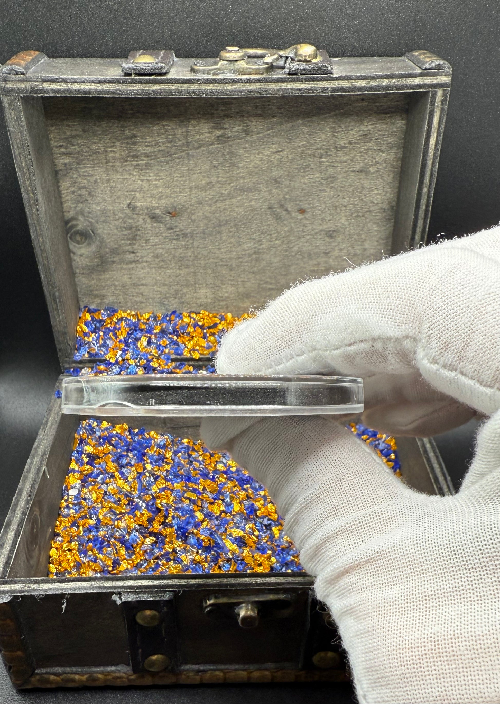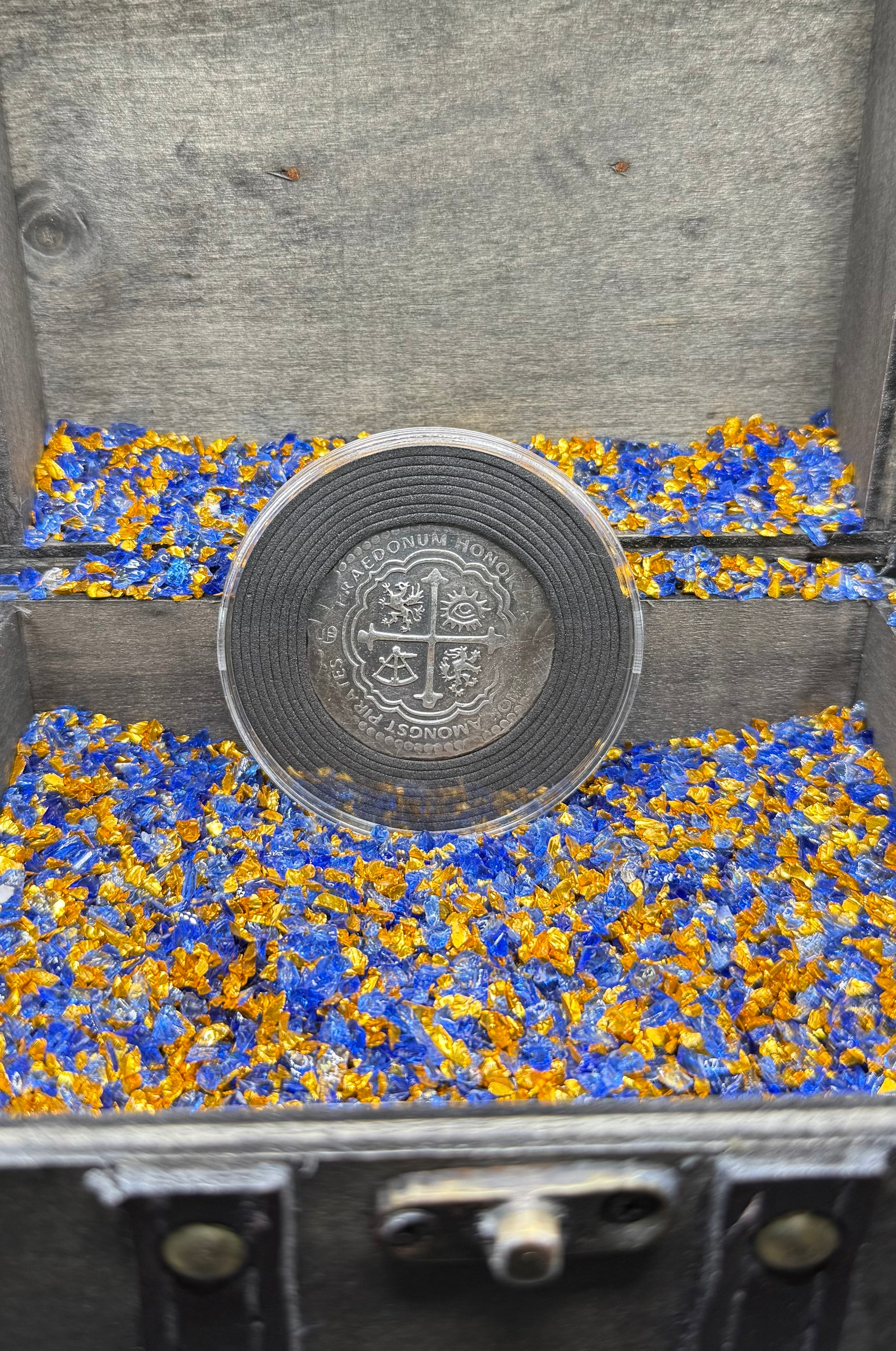 This precious piece comes sealed in a protective capsule (Acid Free / No PVC) protecting it from dust, dirt, and scratches. A custom wooden pirate treasure chest is included to secure your valuable pirate treasure. Certificate of authenticity is included.