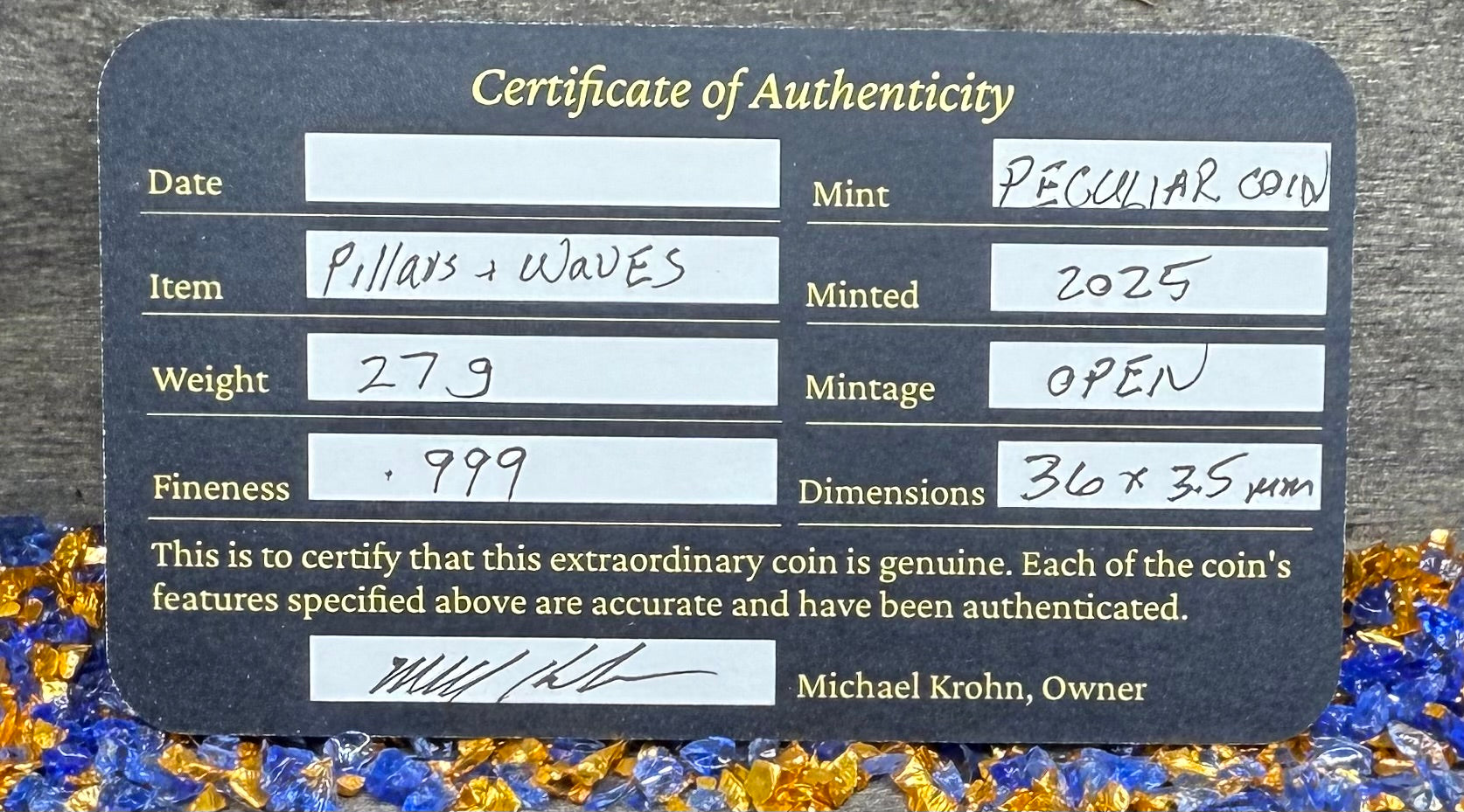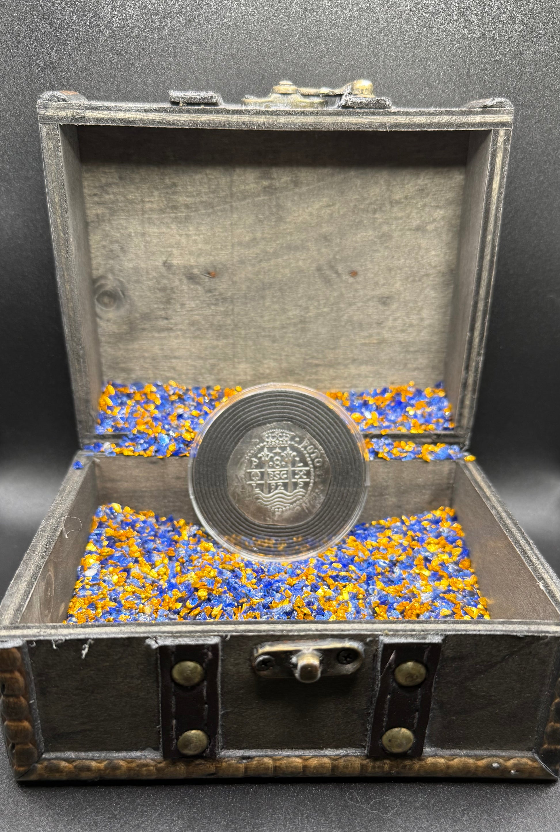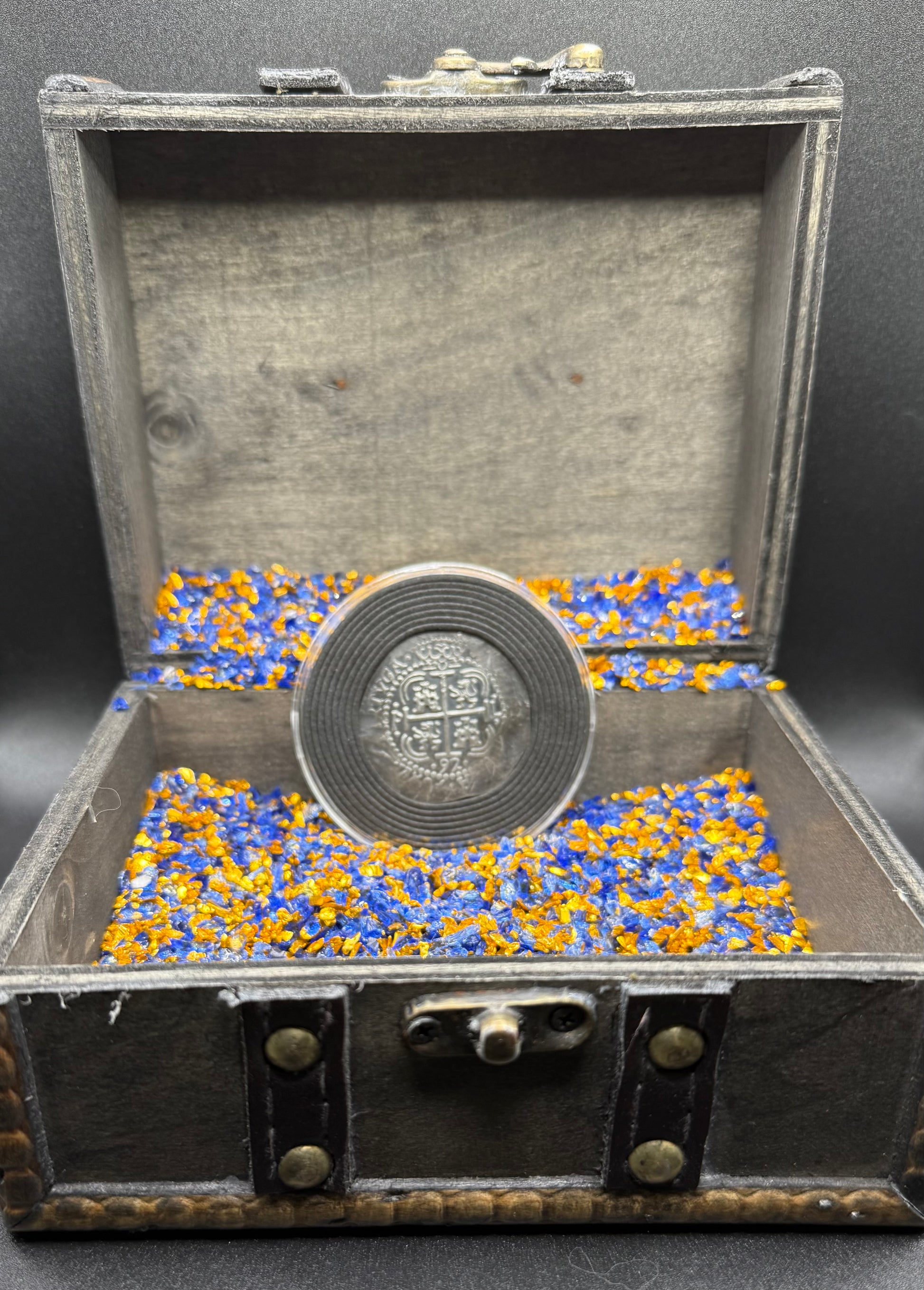 This precious piece comes sealed in a protective capsule (Acid Free / No PVC) protecting it from dust, dirt, and scratches. A custom wooden pirate treasure chest is included to secure your valuable pirate treasure. Certificate of authenticity is included.
