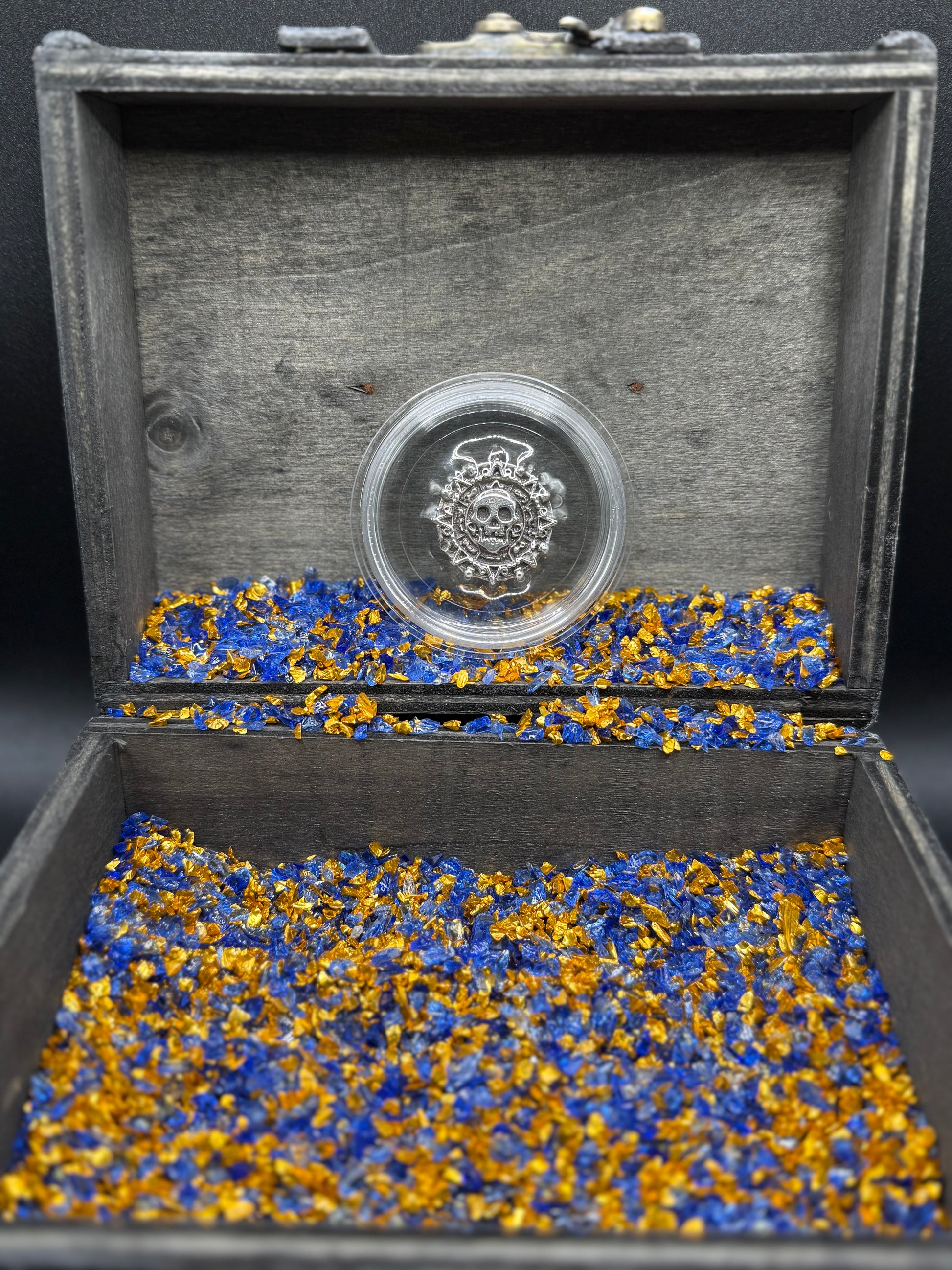 This precious piece comes sealed in a protective capsule (Acid Free / No PVC) protecting it from dust, dirt, and scratches. A custom wooden pirate treasure chest is included to secure your valuable pirate treasure. Certificate of authenticity is included.