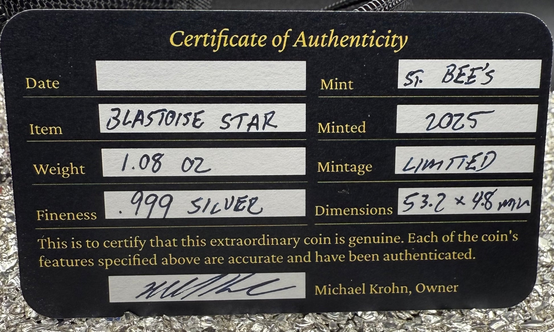 Pokémon 'Blastoise Star' 1.08 oz .999 Fine Silver Star Hand Crafted by St Bee's in England, Shiny Finish, Includes Poké Ball & COA, Mint Condition, Limited Edition