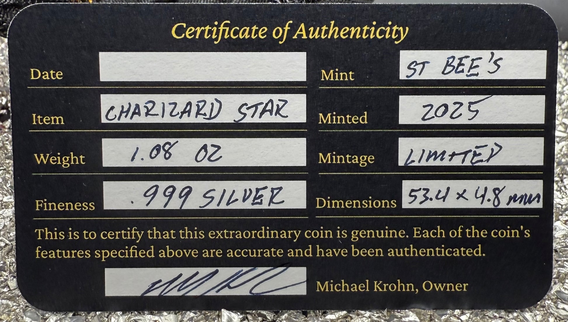 Pokémon 'Charizard Star' 1.08 oz .999 Fine Silver Star Hand Crafted by St Bee's in England, Shiny Finish, Includes Poké Ball & COA, Mint Condition, Limited Edition
