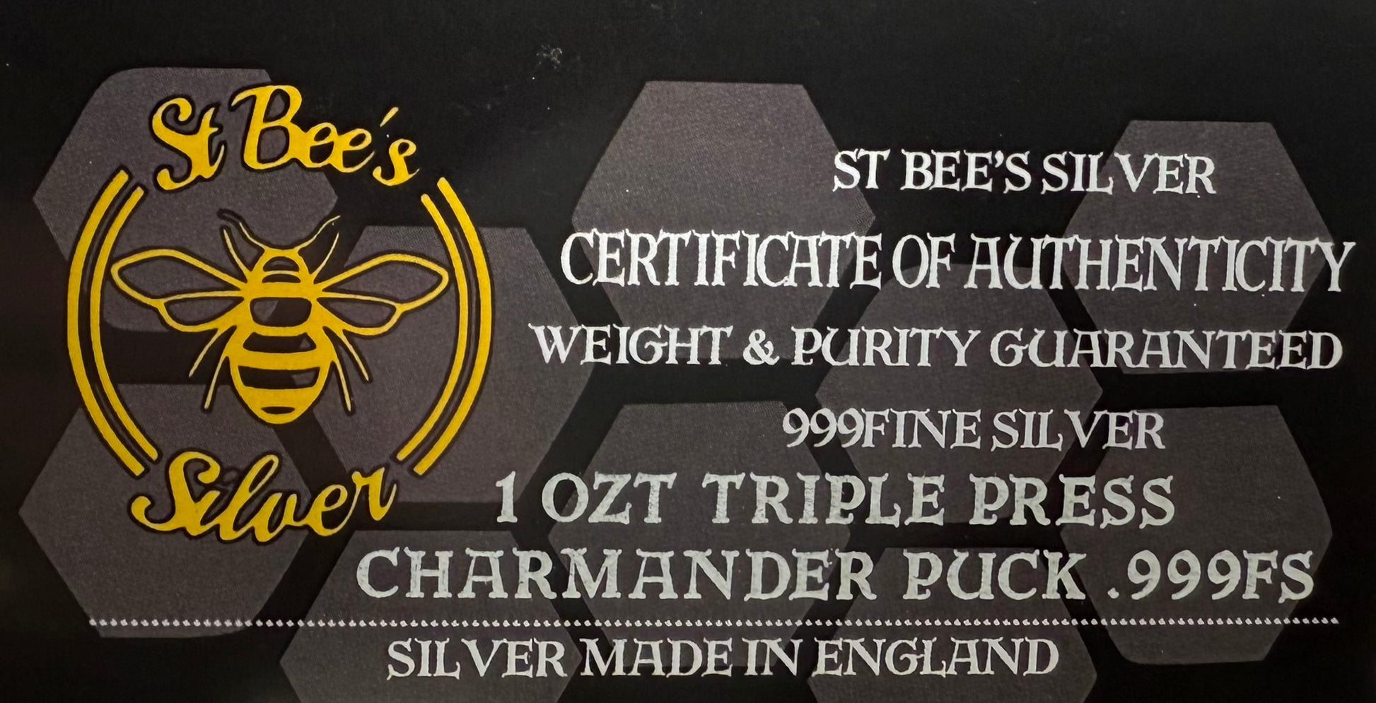 This rare 'Charmander' silver round is hand crafted in Northern England by St Bee's Silver using 1 ounce of .999 pure silver bullion. This beautiful limited edition sliver art is inspired by Pokémon and makes a fantastic addition to any portfolio.