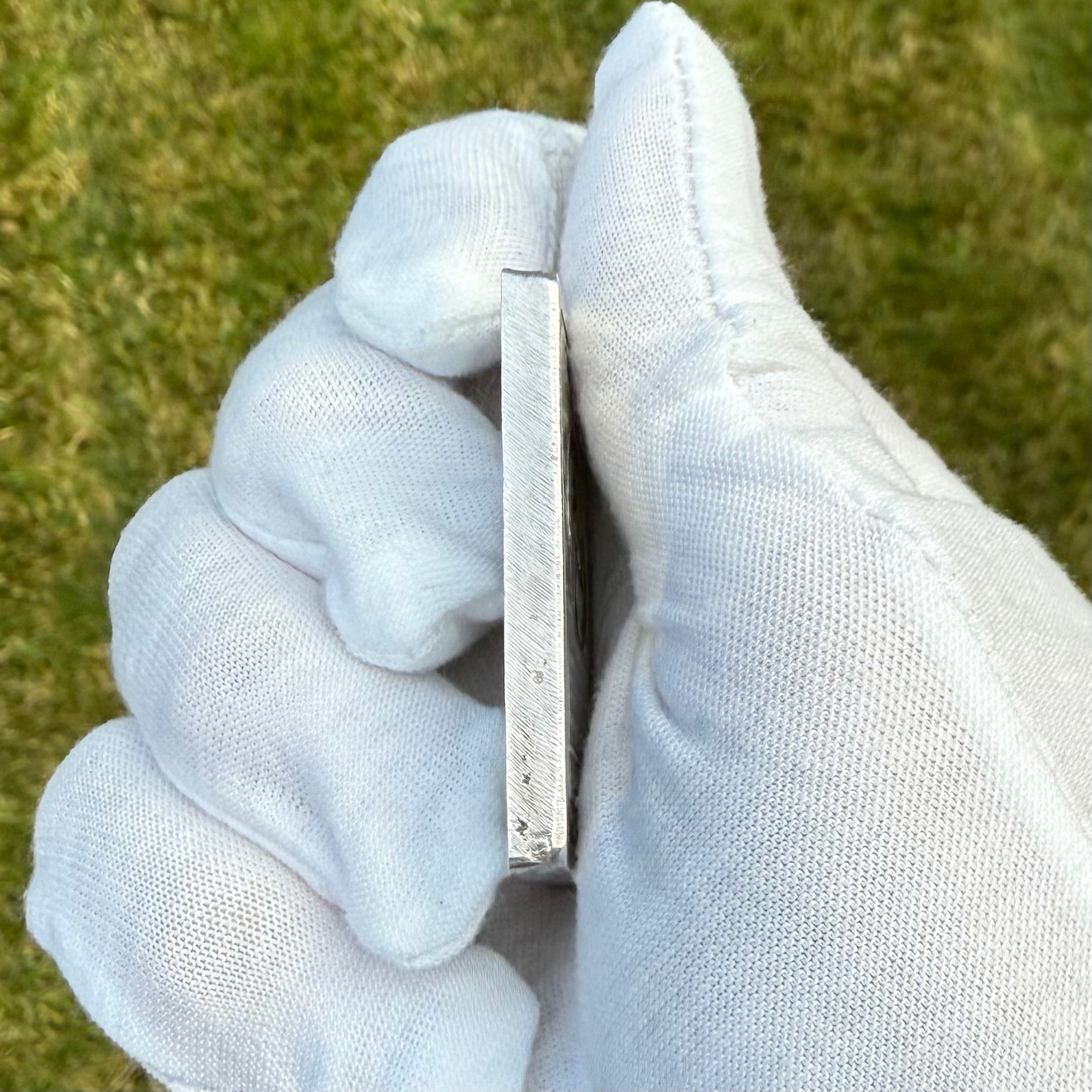 This rare 'Fire Charizard' silver trading card is hand crafted in Northern England by St Bee's Silver using 2.82 ounces of .999 pure silver bullion. This beautiful limited edition sliver art is inspired by Pokémon and makes a fantastic addition to any portfolio. Approximate dimensions are 50 mm x 36 mm x 5 mm.