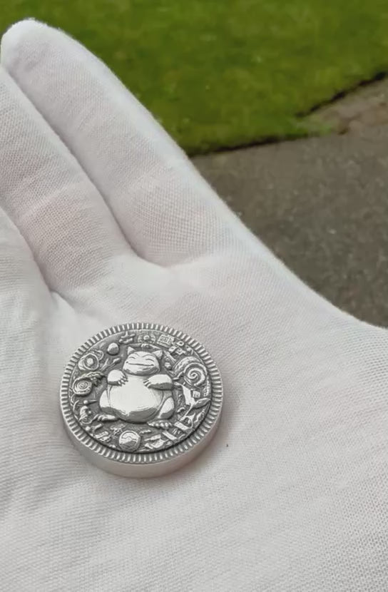 This rare 'Snorlax' silver round is hand crafted in Northern England by St Bee's Silver using 2 ounces of .999 pure silver bullion. This beautiful limited edition sliver art is inspired by Pokémon and makes a fantastic addition to any portfolio.