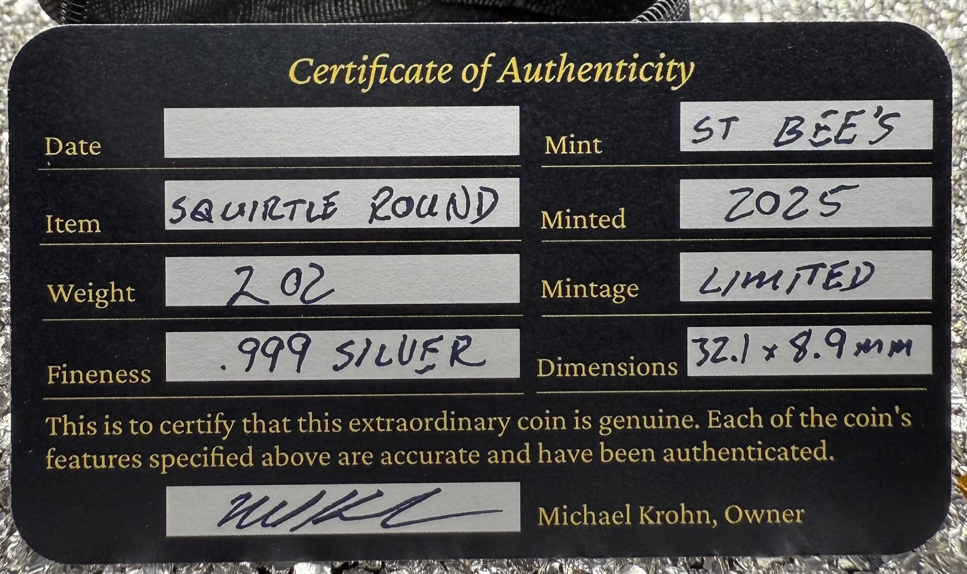 Pokémon 'Squirtle' 2 oz .999 Pure Silver Round Hand Crafted by St Bee's in England, Satin Finish, Includes Poké Ball & COA, Mint Condition Limited Edition