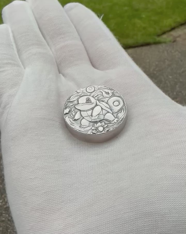 This rare 'Squirtle' silver round is hand crafted in Northern England by St Bee's Silver using 2 ounces of .999 pure silver bullion. This beautiful limited edition sliver art is inspired by Pokémon and makes a fantastic addition to any portfolio.