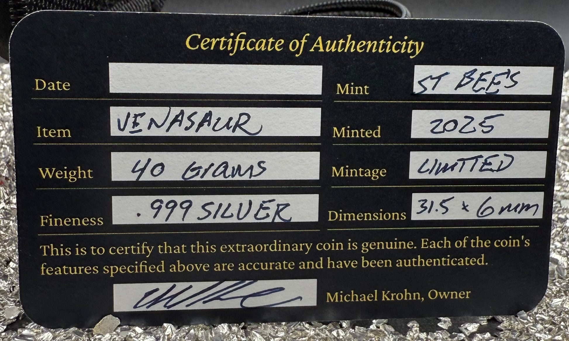 Pokémon 'Venasaur' 1.25 oz .999 Pure Silver Round Hand Crafted by St Bee's in England, Shiny Finish, Includes Poké Ball & COA, Mint Condition Limited Edition