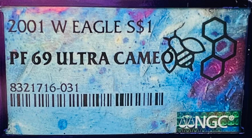 Proof 2001 (W) $1 American Silver Eagle NGC PF69 Trader Bea Private Issue Purple Foil Mint Condition Rare