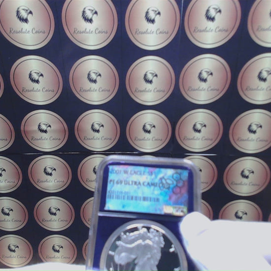 This ultra rare certified 2001 West Point PF69 American Silver Eagle coin was struck nearly perfectly and received a stunning near highest grade by the NGC. This simple yet elegant piece is in mint condition with a proof finish wrapped in rare purple foil holder. Limited.