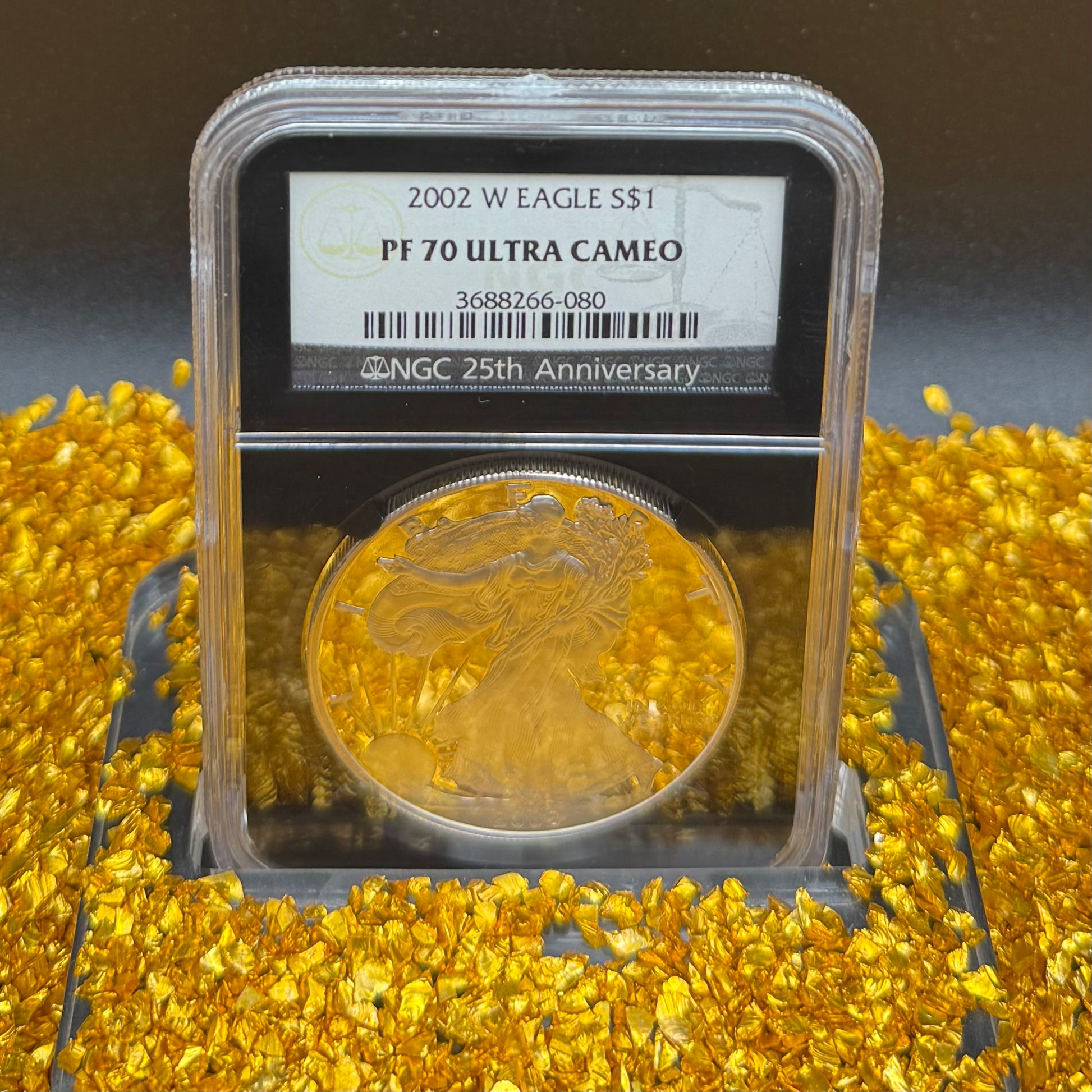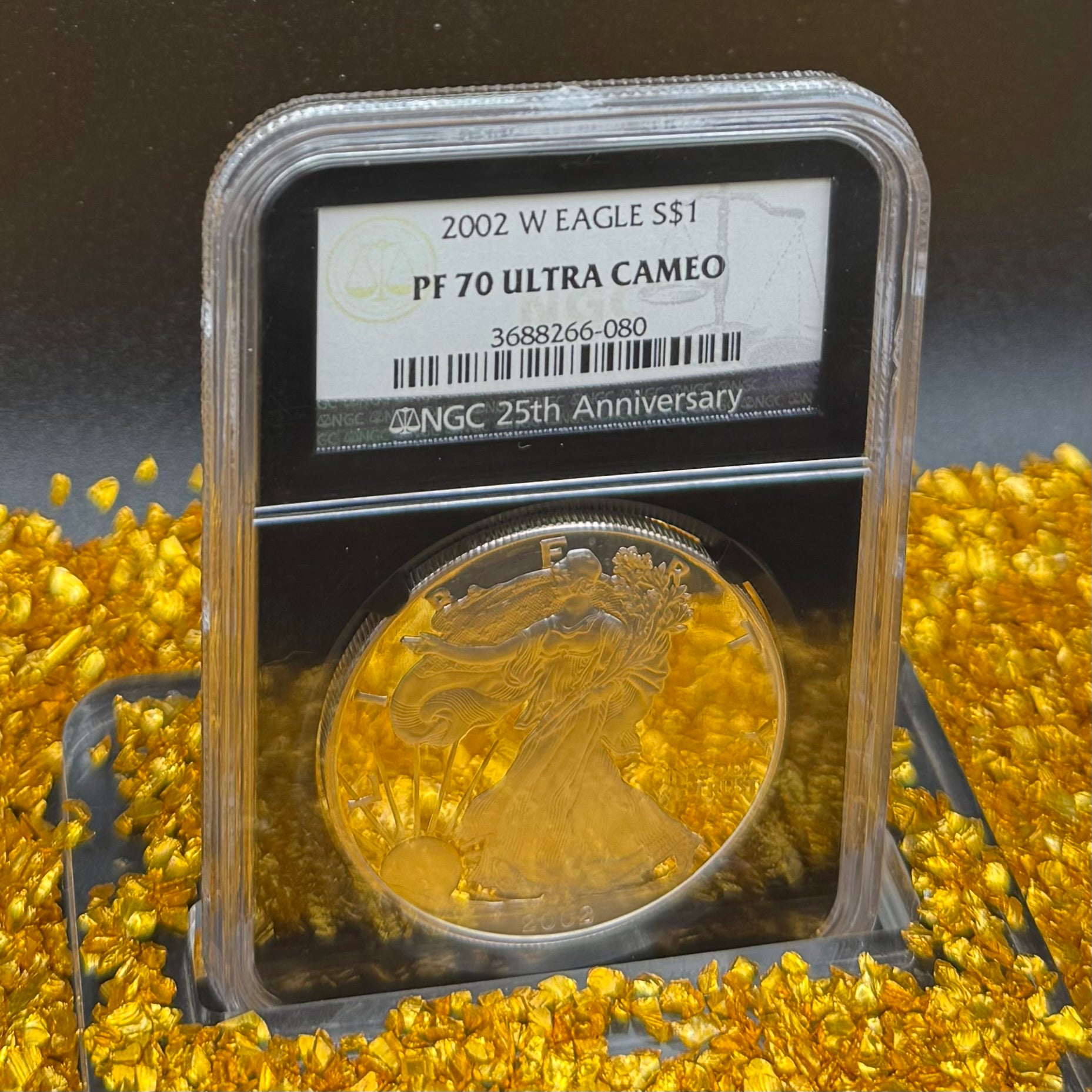 Proof 2002 (W) $1 American Silver Eagle NGC PF70UC Classic Blue Label Black Holder (1 of 6,153)