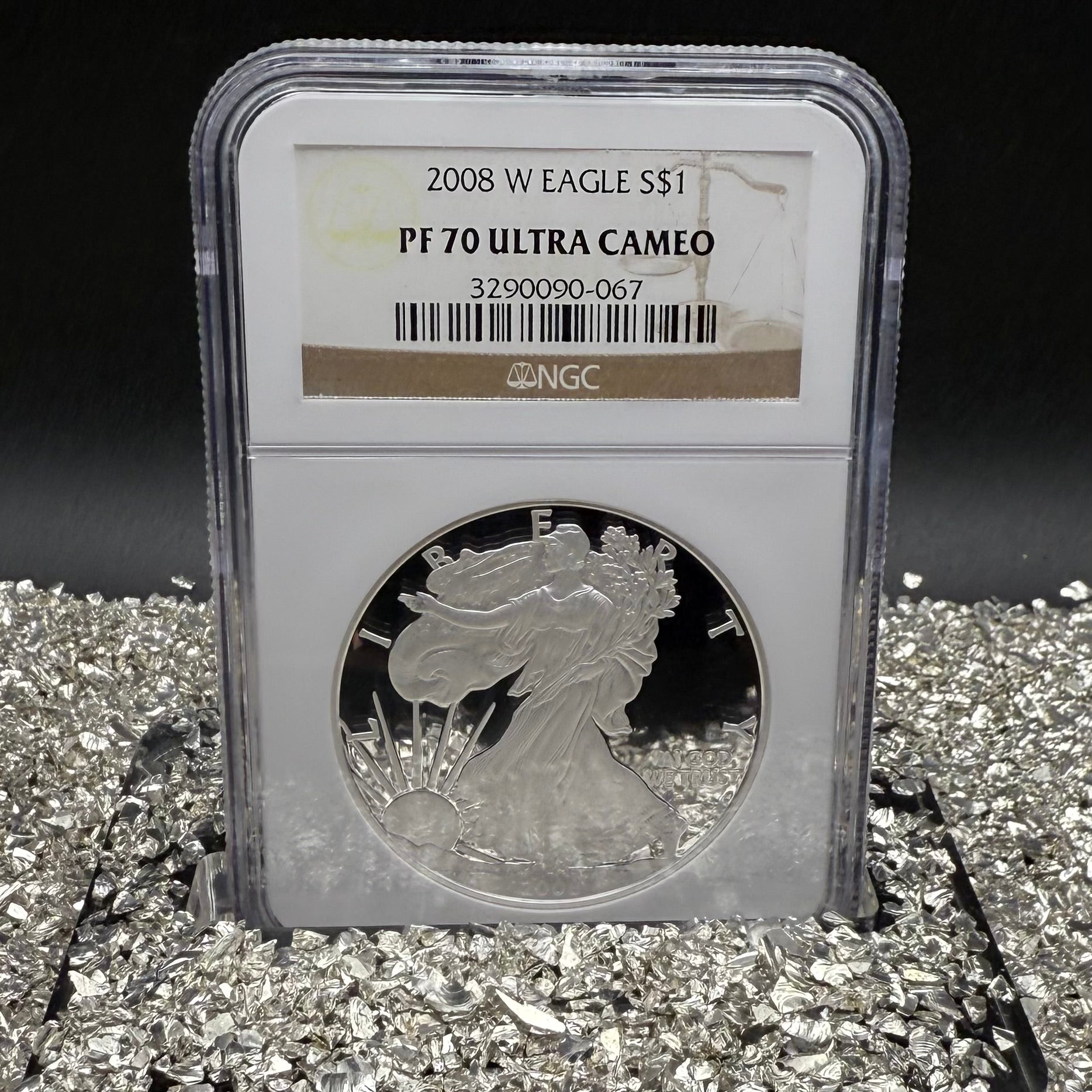 Proof 2008 (W) $1 American Silver Eagle NGC PF70UC Classic Brown Label (1 of 15,136)