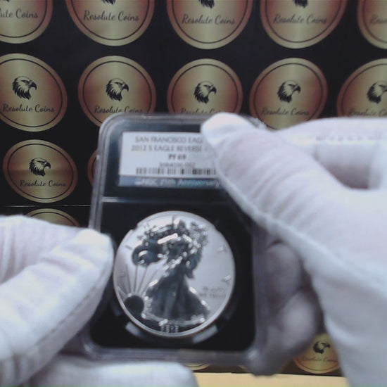 This rare certified 2012 San Francisco PF69 American Silver Eagle coin was struck nearly perfectly and received a stunning near highest grade by the NGC. This simple yet elegant piece is in mint condition with a reverse proof finish encased in a beautiful black core.