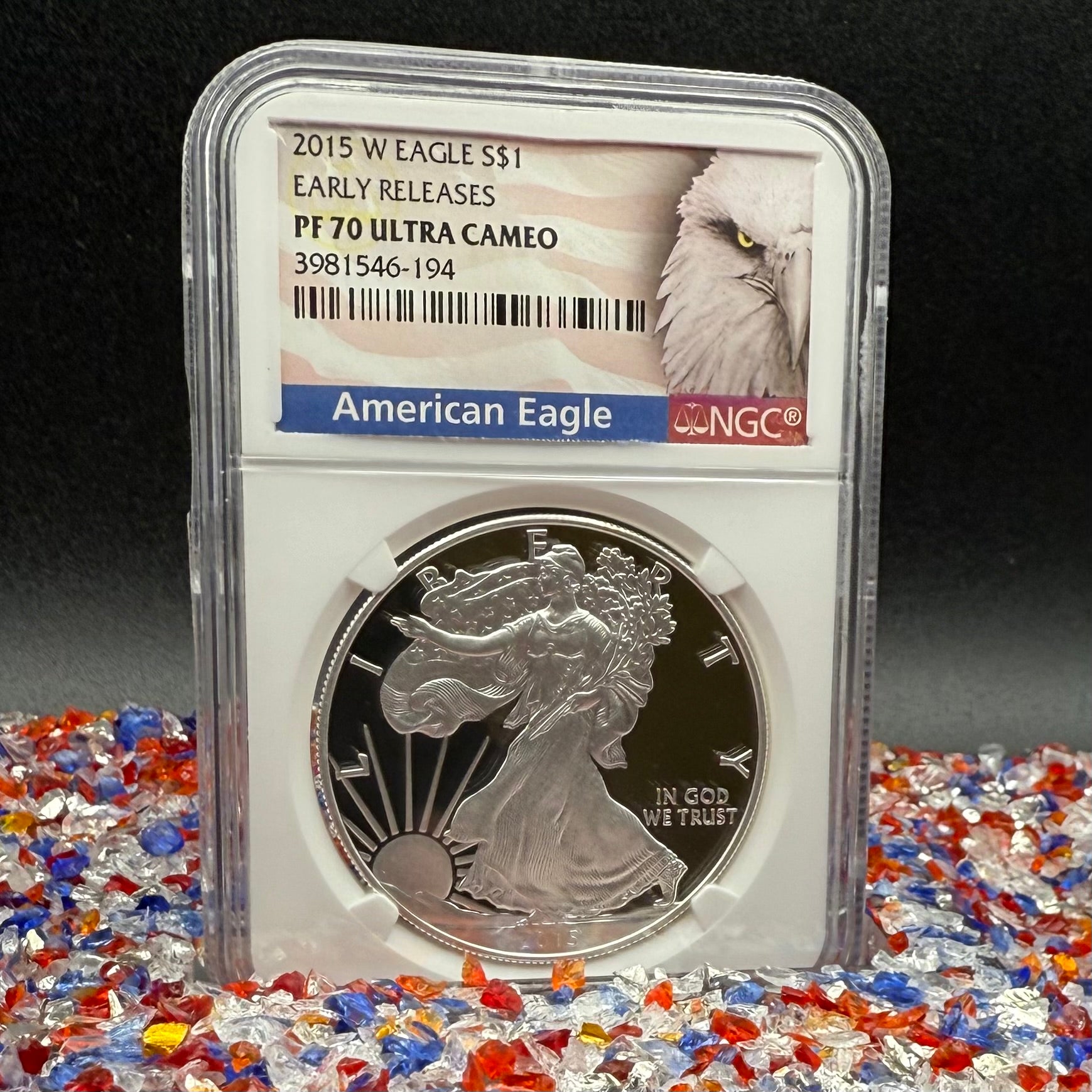 Proof 2015 (W) $1 American Silver Eagle NGC PF70 Early Releases Eagle Label Mint Condition (1 of 9,213)