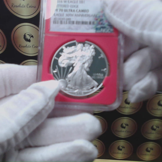 This rare certified 2016 West Point PF70 American Silver Eagle coin was struck perfectly and received a stunning highest grade by the NGC. This simple yet elegant piece is in near mint condition (light contact marks) with a proof finish wrapped in a Christmas Tree 30th Anniversary Label. Coin has lettered edge and held in a red core.
