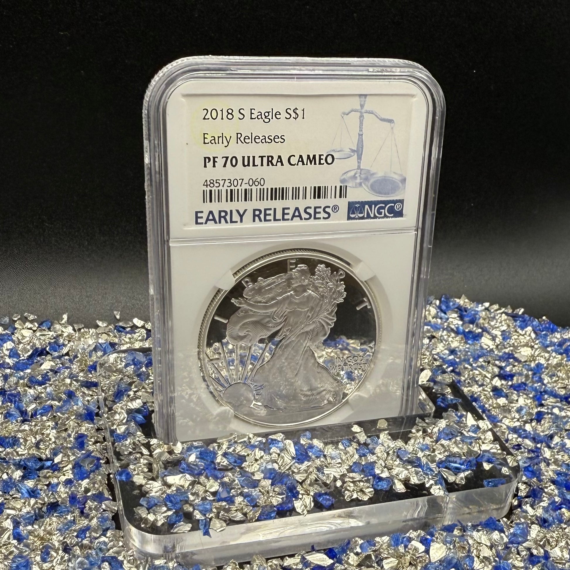 Proof 2018 (S) $1 American Silver Eagle NGC PF70UC Early Releases Classic Blue Label White Holder (1 of 4,975) Mint