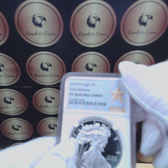 This rare certified 2019 West Point PF70 American Silver Eagle coin was struck perfectly and received a stunning highest grade by the NGC. This simple yet elegant piece is in near mint condition (light contact marks on holder) with a proof finish wrapped in a West Point Gold Star label. Low mintage of 4,482 makes this an excellent addition to any collection.