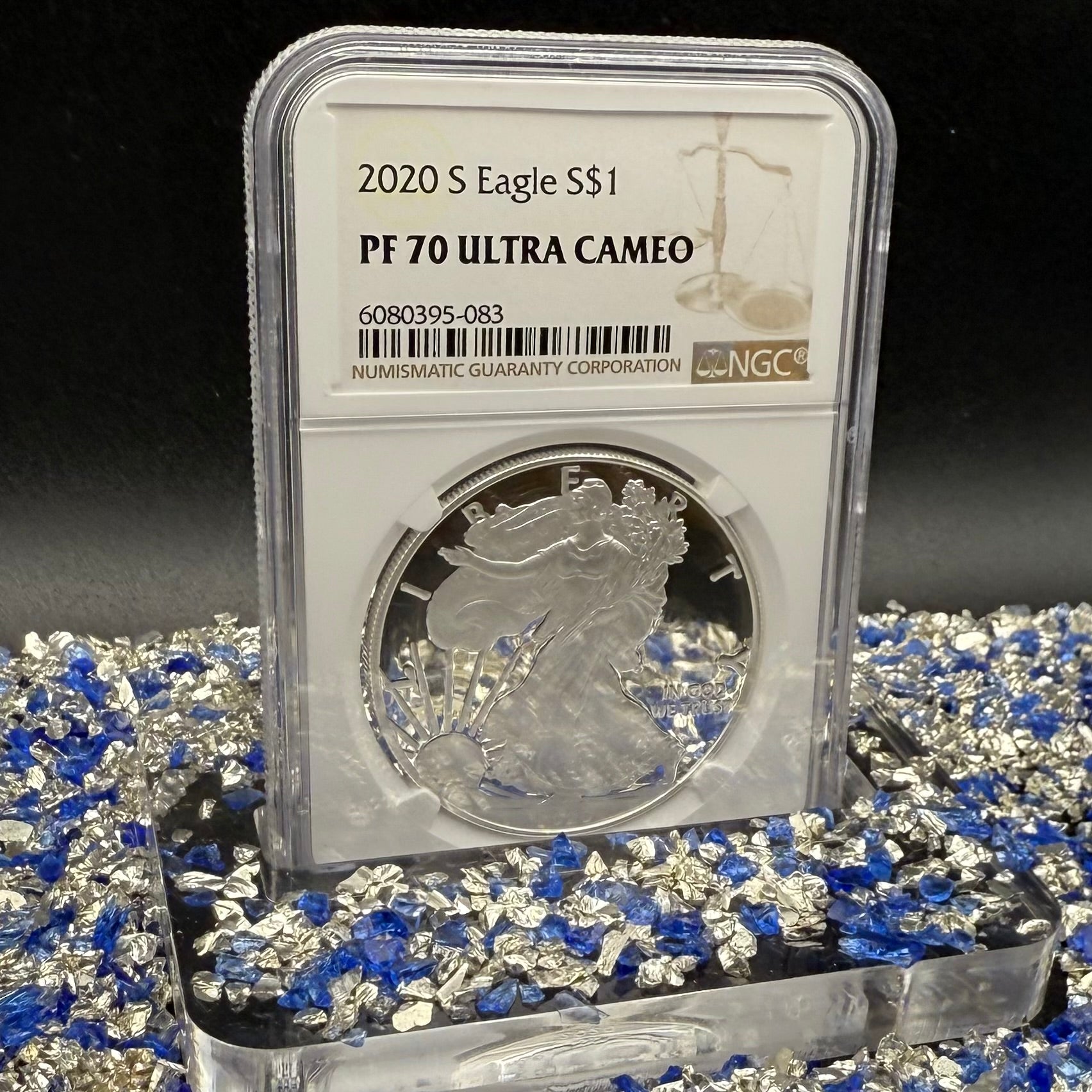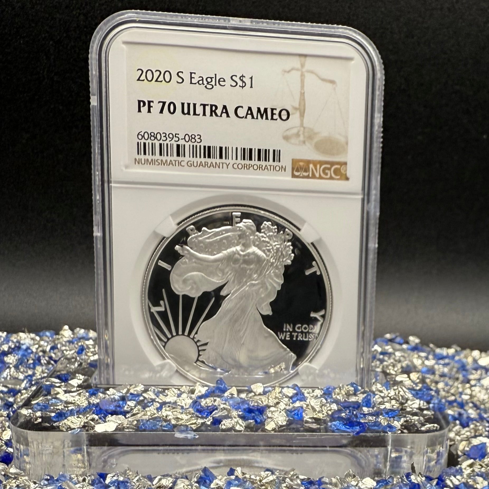 This rare certified 2020 San Francisco PF70UC American Silver Eagle coin was struck perfectly and received a stunning highest grade by the NGC. This simple yet elegant piece is in excellent condition (light contact marks) with a proof finish in a brown label. Low mintage of 2,719 makes this piece an excellent addition to any collection.