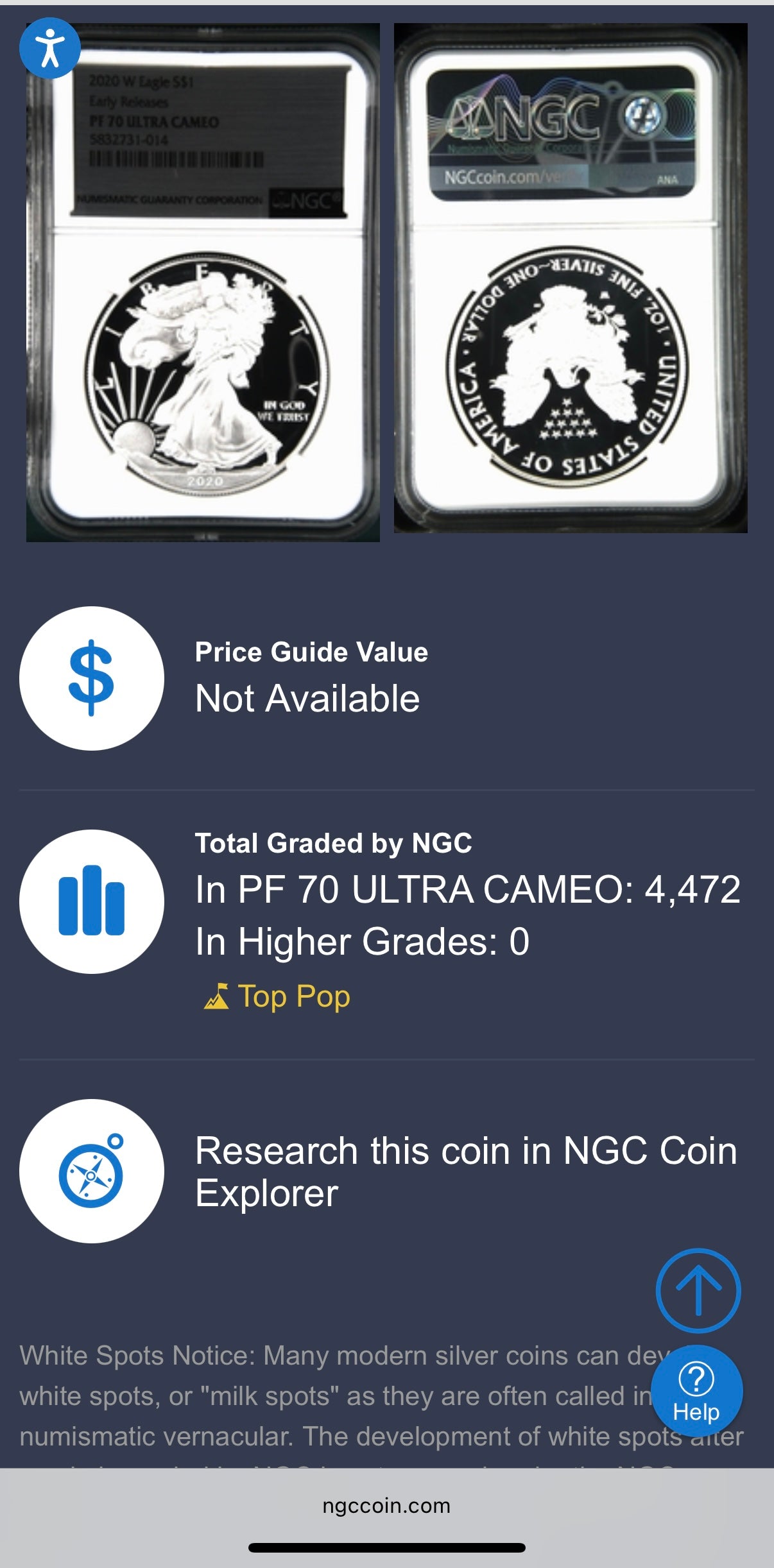 Proof 2020 (W) $1 American Silver Eagle NGC PF70UC Early Releases Stainless Steel Label Mint Condition (1 of 4,472)