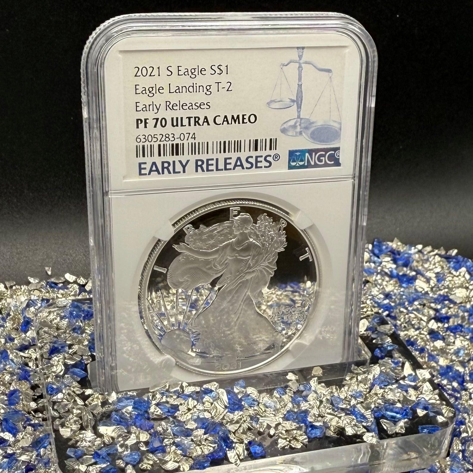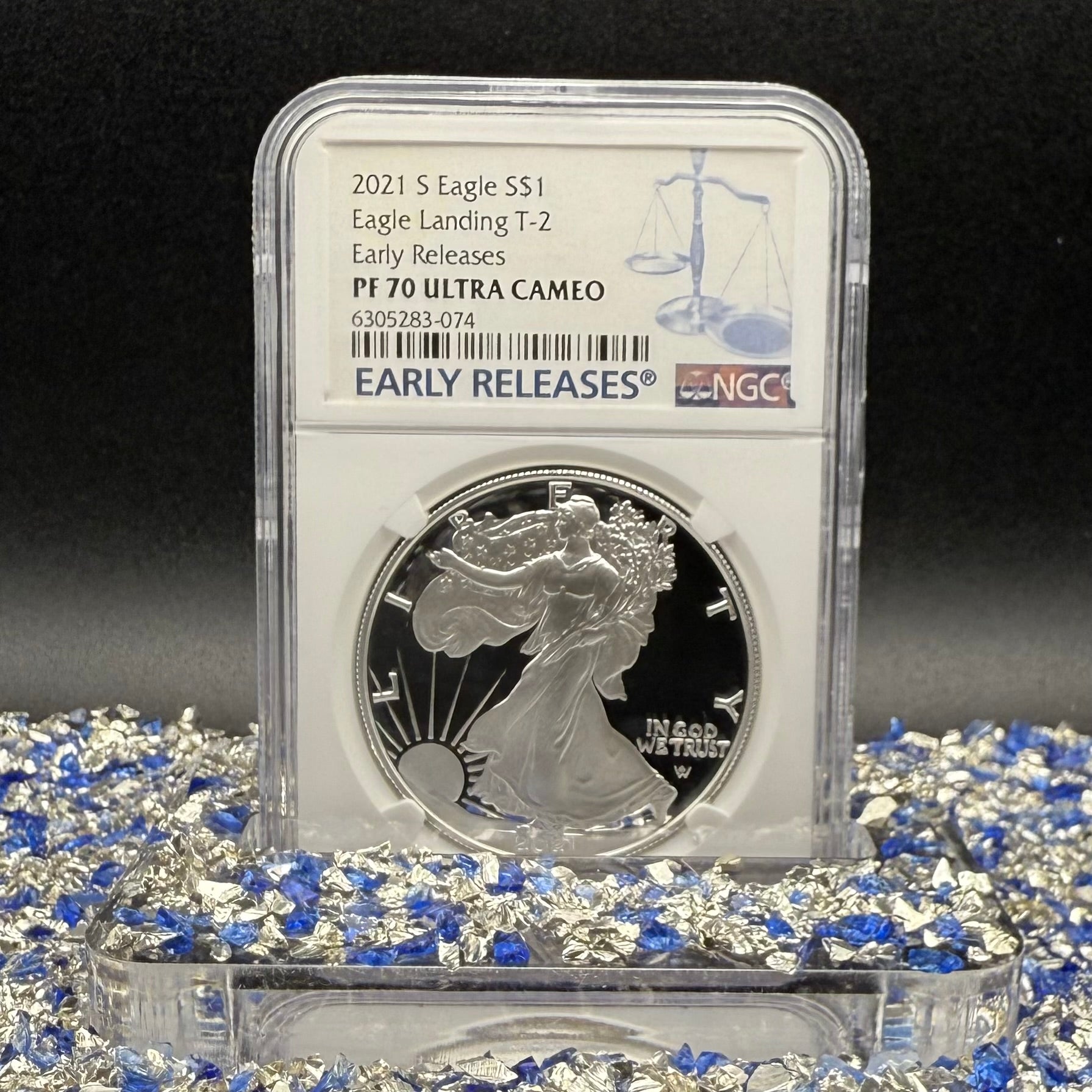 Proof 2021 (S) $1 American Silver Eagle NGC PF70UC T-2 Early Releases Classic Blue Label White Holder (1 of 1,303) Mint