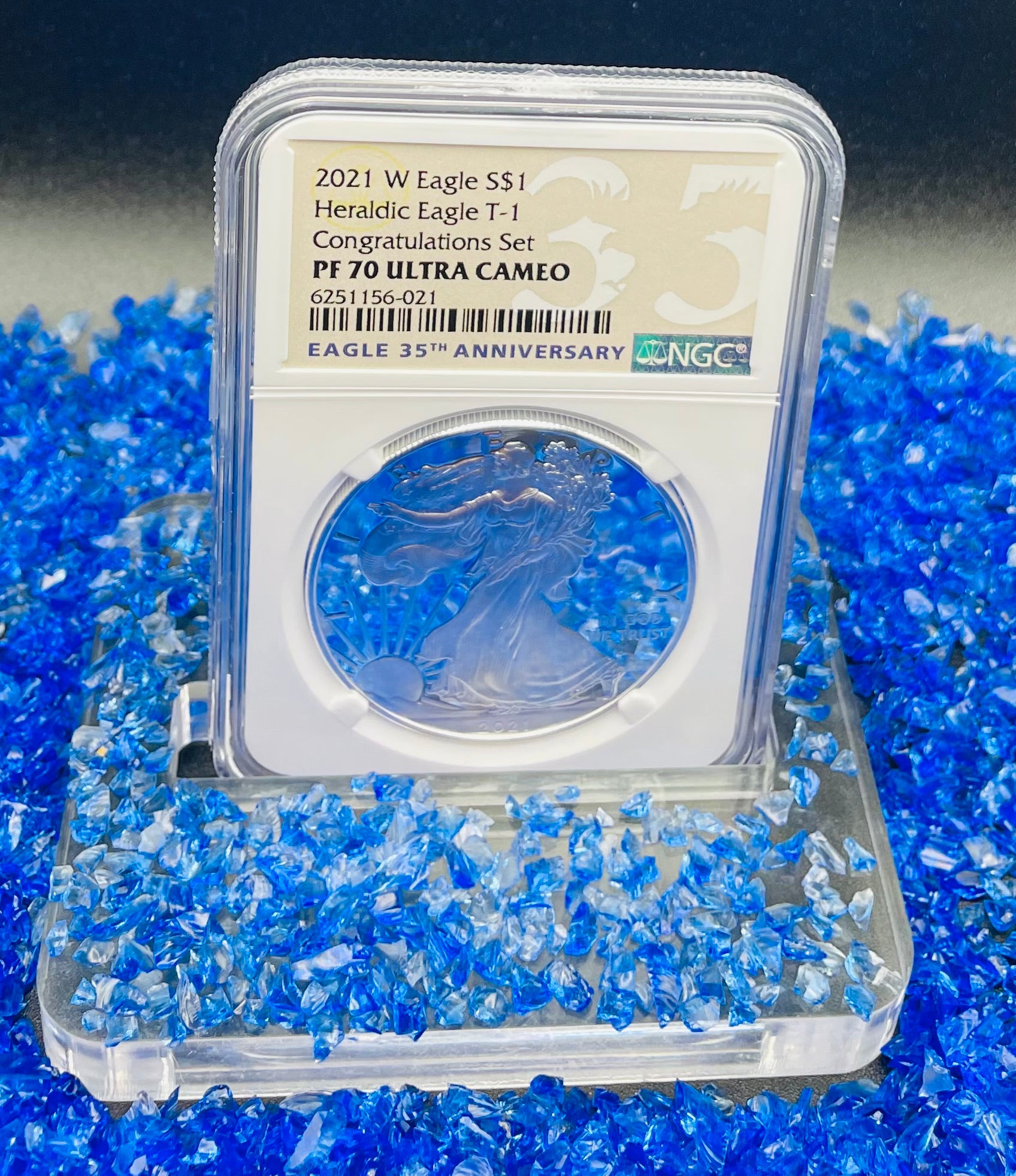 Proof 2021 (W) $1 American Silver Eagle NGC PF70 Type 1 Congratulations Set 35th Anniversary (Rare 1 of 985)