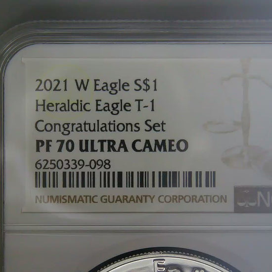 This rare certified 2021 Type 1 West Point PF70 American Silver Eagle coin was struck perfectly and received a stunning highest grade by the NGC. This simple yet elegant piece is in mint condition with a proof finish wrapped in a modern brown label with rare congratulations set designation. Low mintage of 984 makes this an excellent addition to any collection.