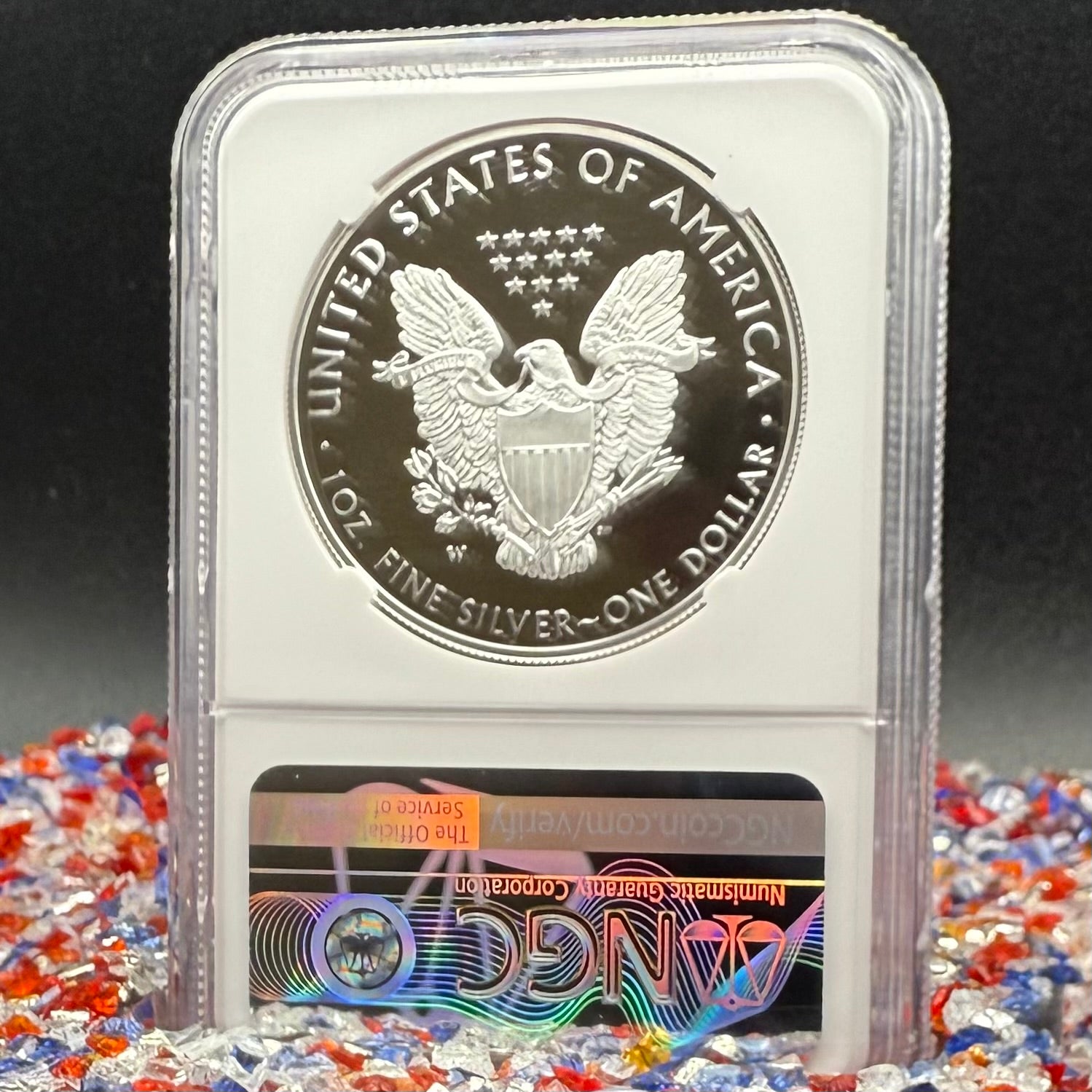 Proof 2021 (W) $1 American Silver Eagle NGC PF70UC T-1 Purple Heart Label White Core (1 of 5,344)