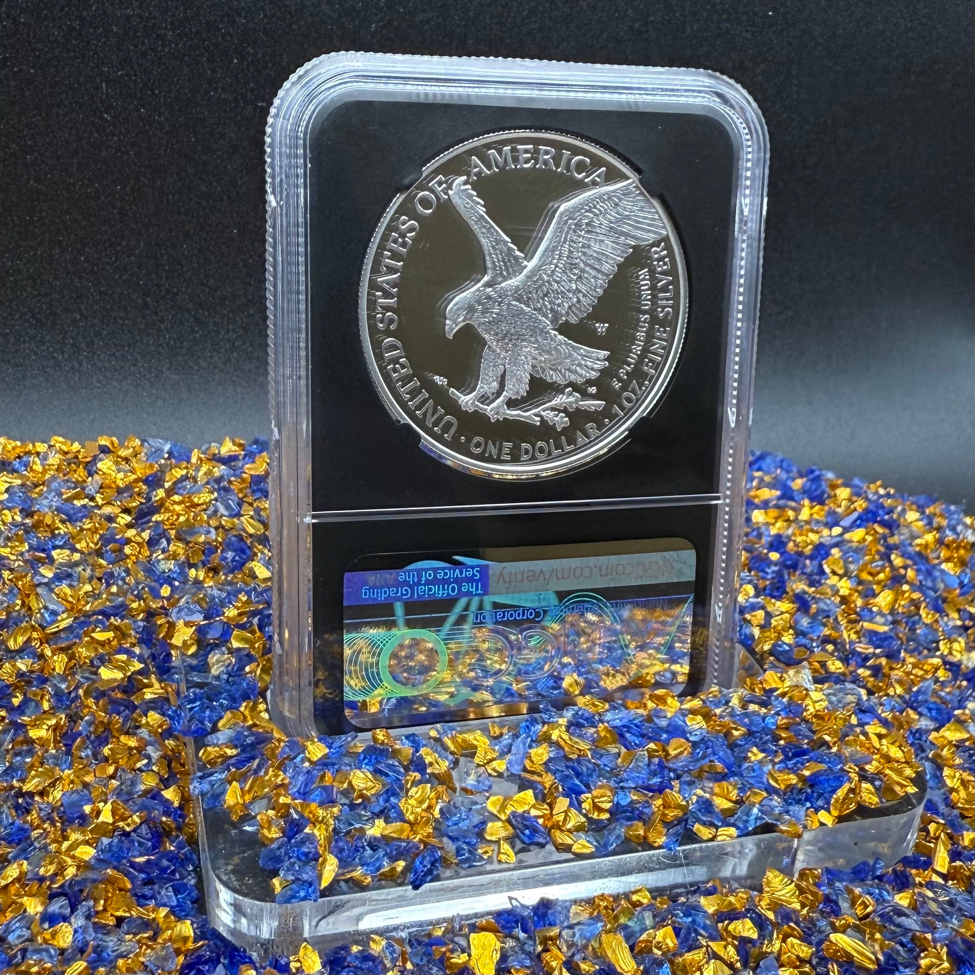 This rare certified 2021 T-2 West Point PF70UC American Silver Eagle coin was struck perfectly and received a stunning highest grade by the NGC. This simple yet elegant piece is in near mint condition (light contact marks on holder) with a proof finish wrapped in a rare limited edition label. Low mintage of 5,000 makes this an excellent addition to any collection.