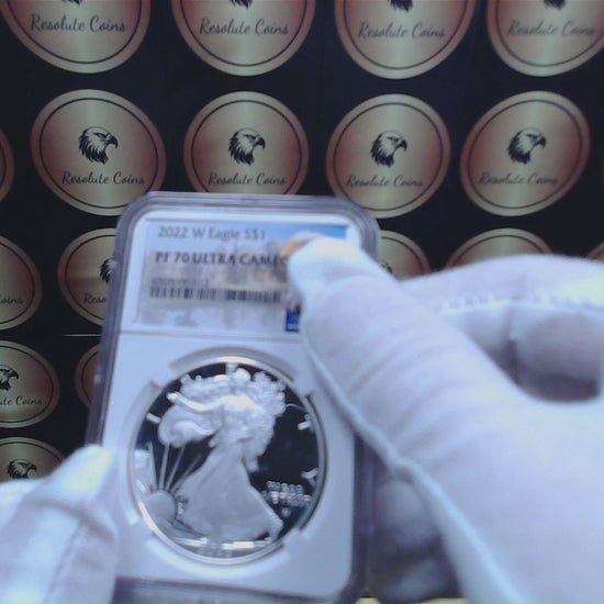 This rare certified 2022 West Point PF70 American Silver Eagle coin was struck perfectly and received a stunning highest grade by the NGC. This simple yet elegant piece is in good condition (few spots at reverse) with a proof finish wrapped in a classic eagle mountain label.