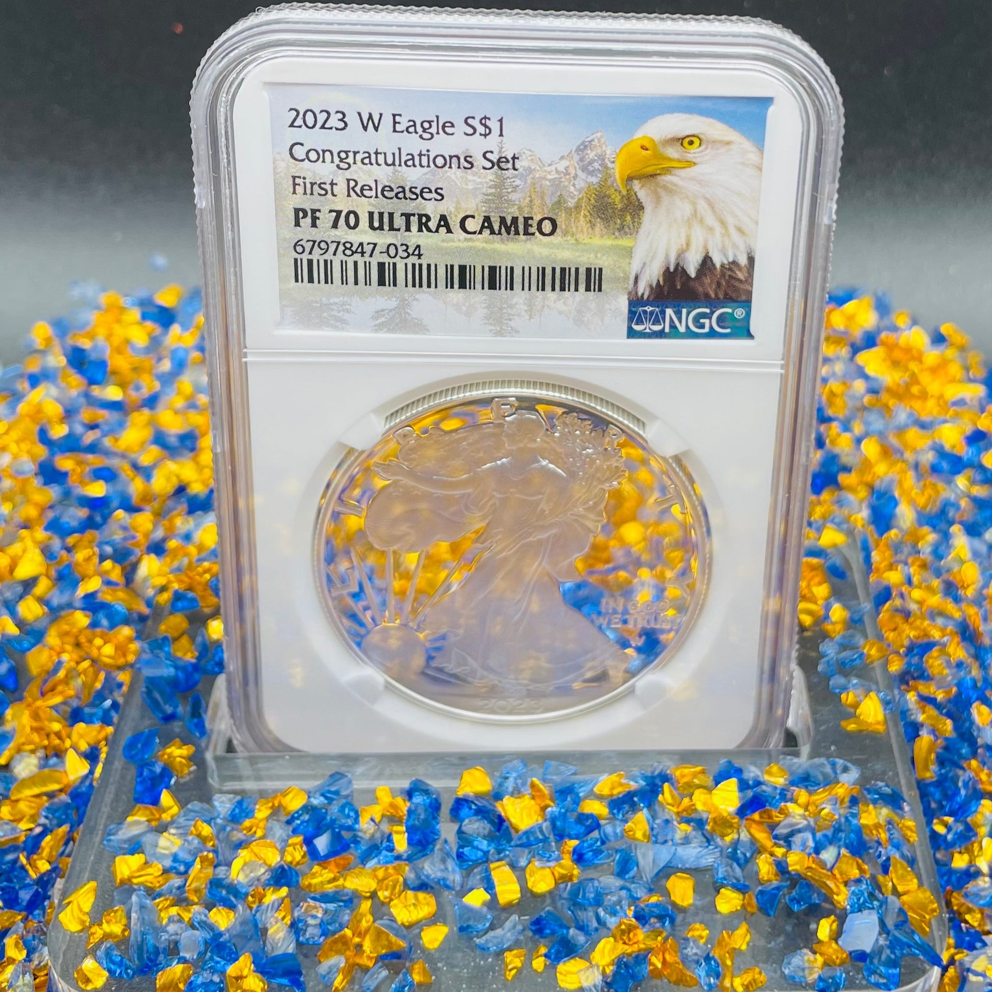 Proof 2023 (W) $1 American Silver Eagle NGC PF70 First Releases Congratulations Set Eagle Mountain Label Mint Condition (1 of 433)