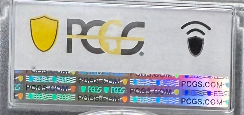 The holder has been micro chipped by PCGS for authentication validation purposes. We tapped the holder against the phone using the PCGS app revealing a green validation notification as displayed in the listing photos.