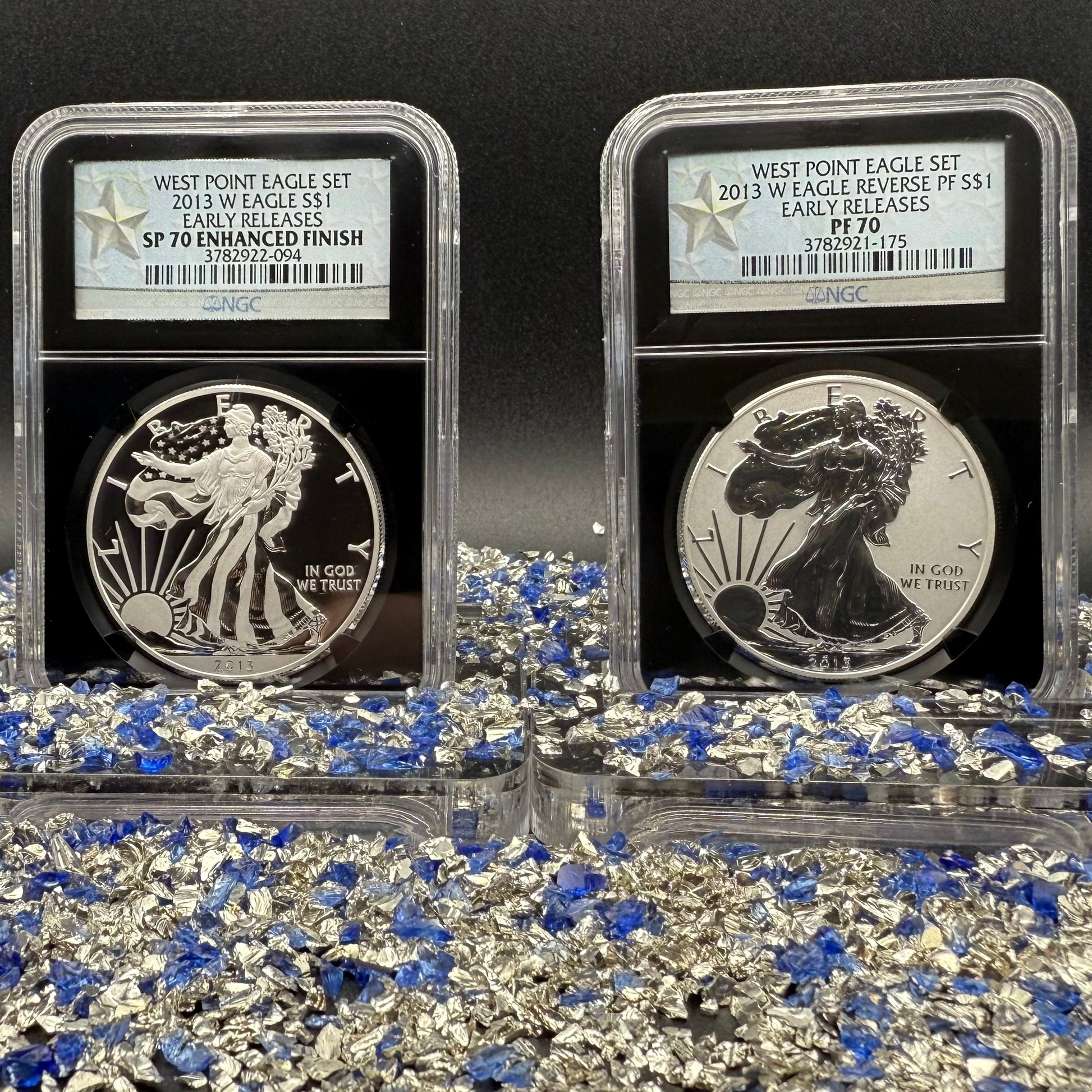 Reverse Proof & Enhanced Finish (2 Coin Set) 2013 (W) $1 American Silver Eagle NGC PF70 Black Core Holder West Point Silver Star Label
