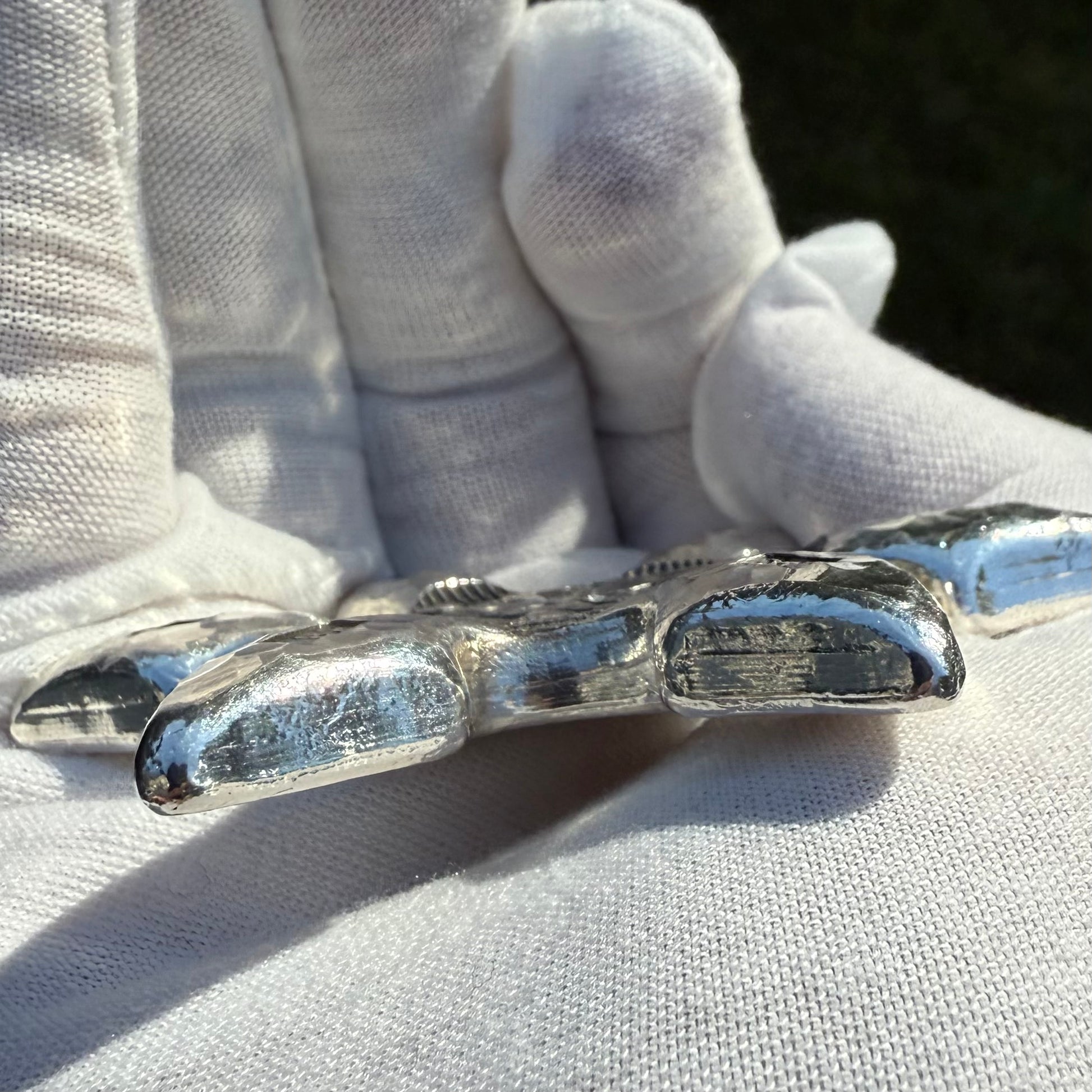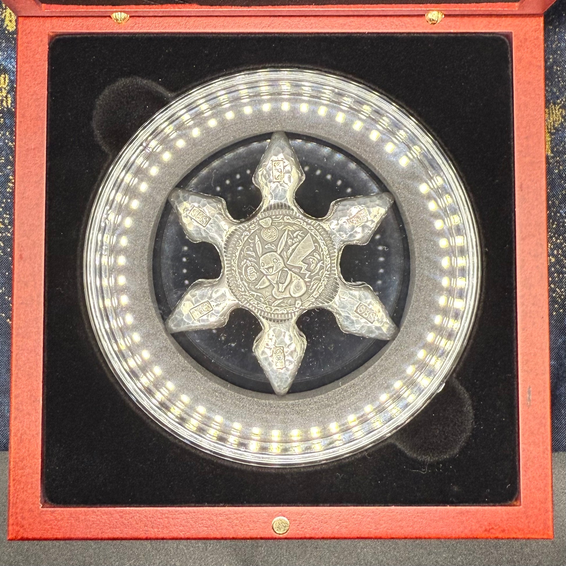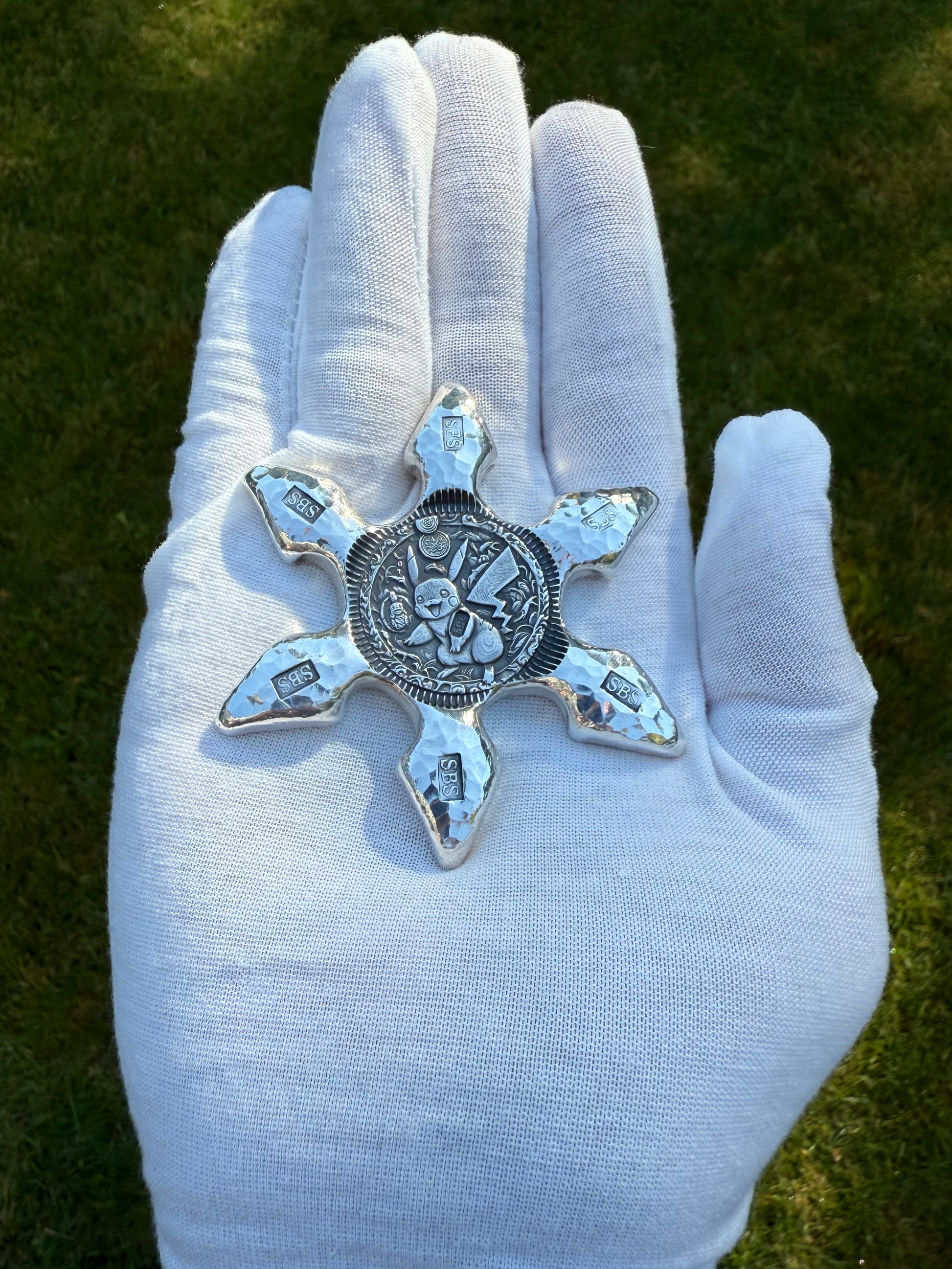 This one-of-a-kind Prototype Pokémon 'Monster Pikachu Star' is hand crafted in Northern England by St Bee's Silver using 5 ounces of .999 pure silver bullion. This star shaped piece of art, inspired by Pokémon, is the first of its kind making it a fantastic addition to any portfolio. The workmanship and detail is exquisite. Approximate dimensions are 81.2 mm x 8.5 mm.