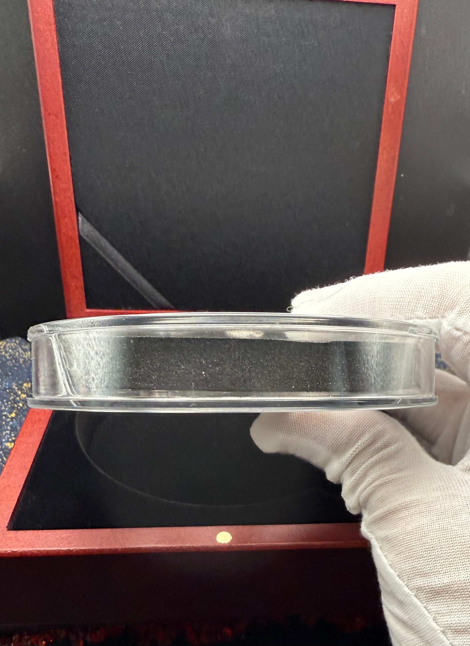 This precious piece comes in a protective capsule (Acid Free / No PVC) protecting it from dust, dirt, and scratches. A custom wooden display box is included to secure your valuable treasure for many years to come. Signed certificate of authenticity is included.